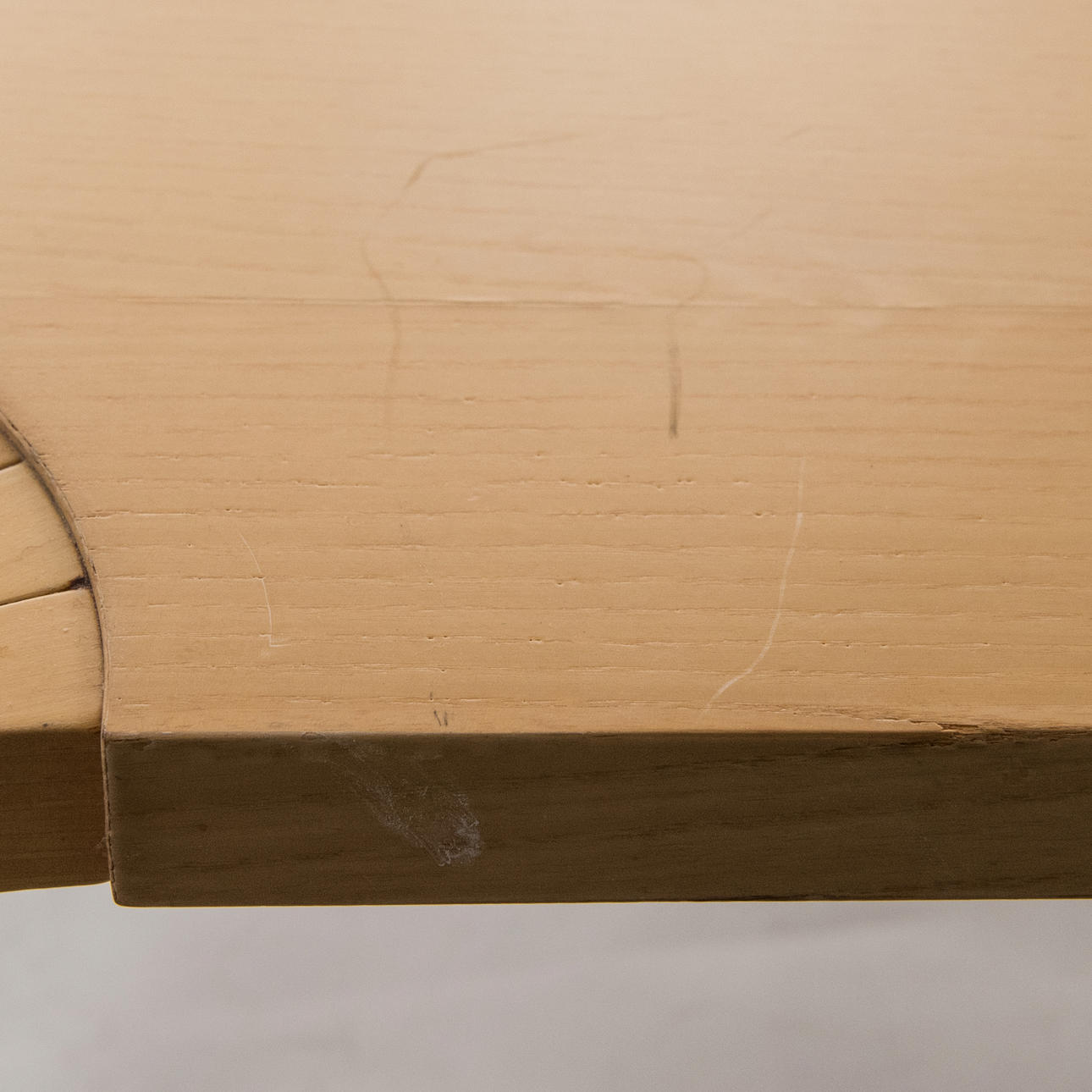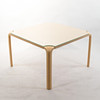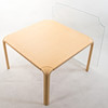 patas de abanico de abedul, tablero de fresno lacado, medidas 90 x 90 cm, altura 56 cm, tapa de cristal a medida incluida.