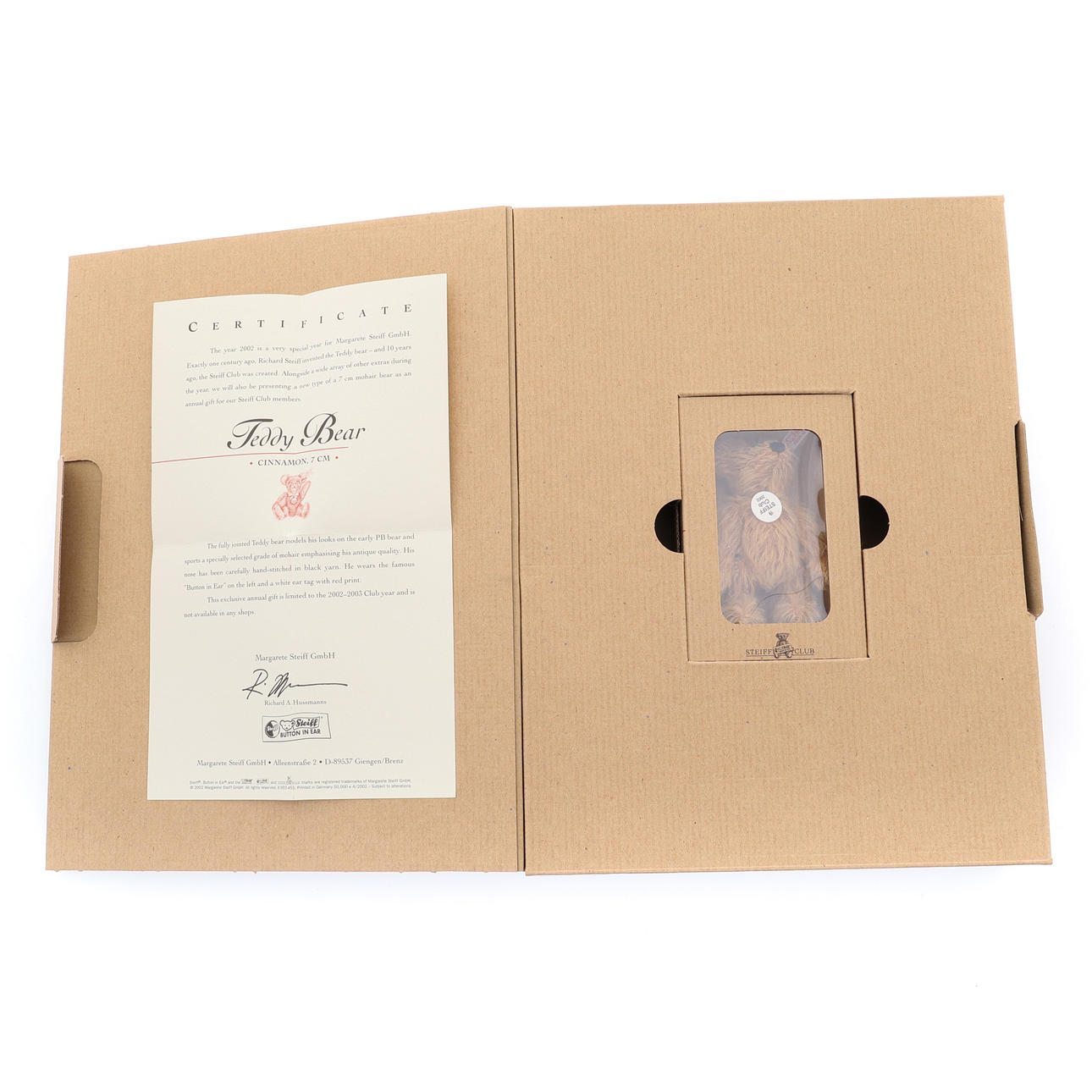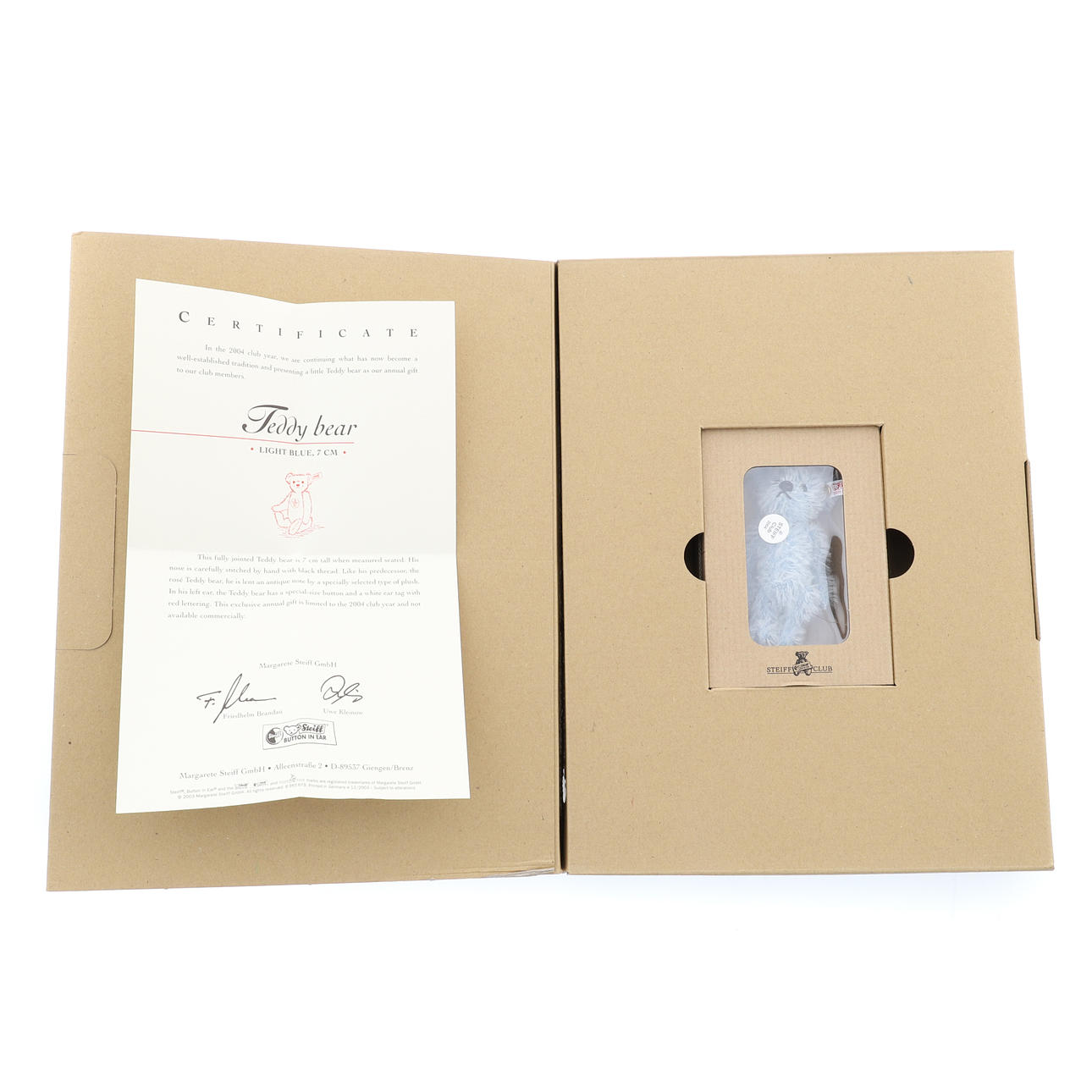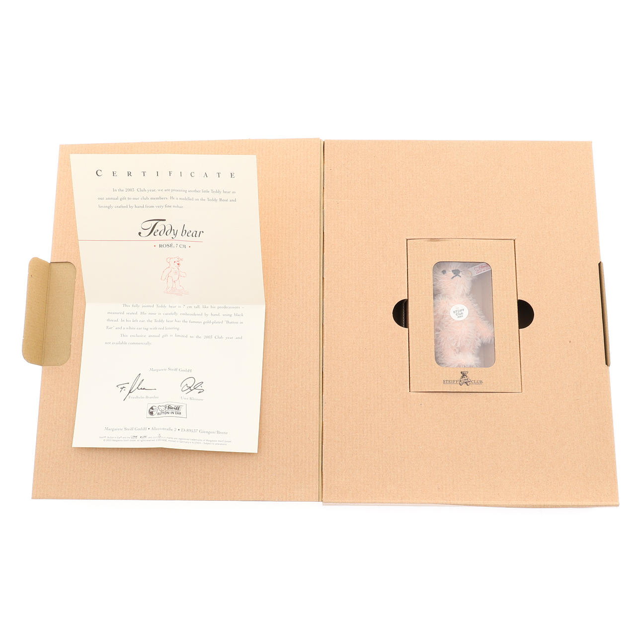 Steiff Club Gift 2002/3, brazos y piernas articulados, canela mohair, crotal numerado con botón chapado en oro, 7cm de alto, con caja original y certificado, junto con otros dos 'Rose' de 7cm de alto y 'Light Blue' de 7cm de alto, cada uno tiene una etiqueta de oreja numerada con un botón chapado en oro en la oreja, con caja original y certificado (6).