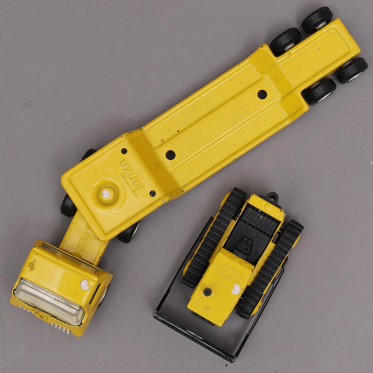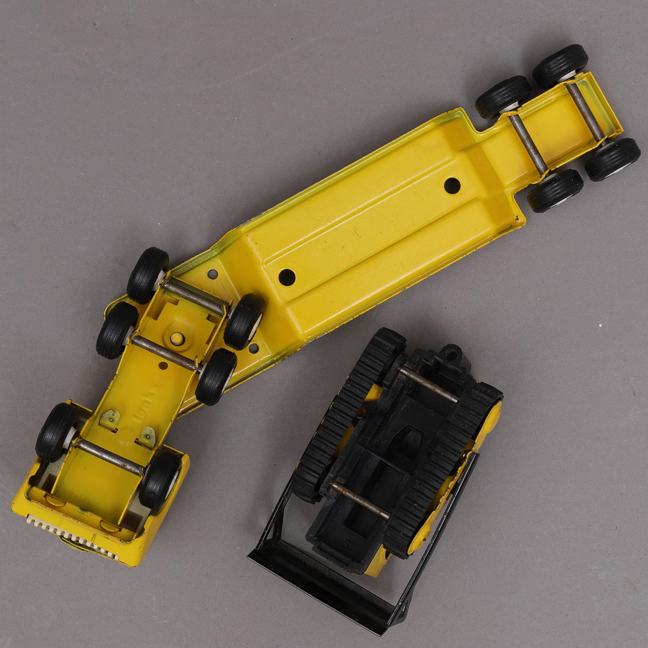 Camión, aproximadamente 29 cm de largo incl. remolque. Excavadora, aproximadamente 10,5 cm de largo.