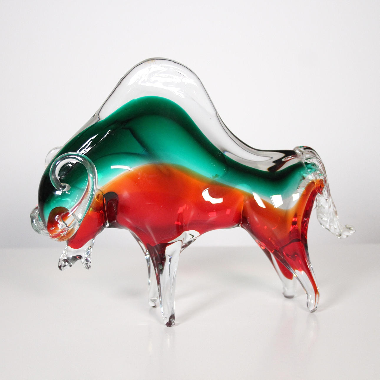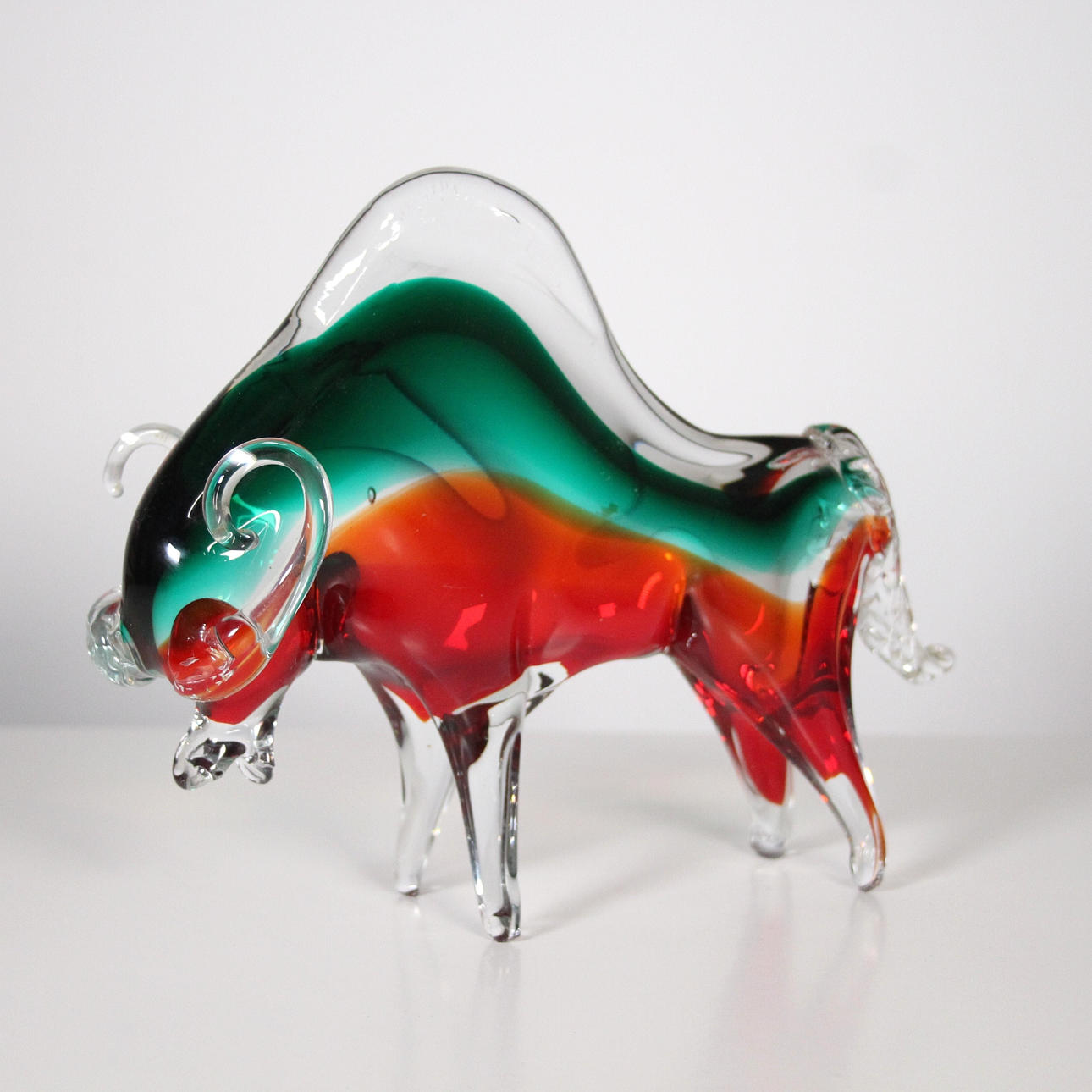 Cristal de Murano, 'toro', escultura, hecho a mano, multicolor, dimensiones aprox.: Al. 22,5 cm, An. 28 cm, profundidad 7 cm.
