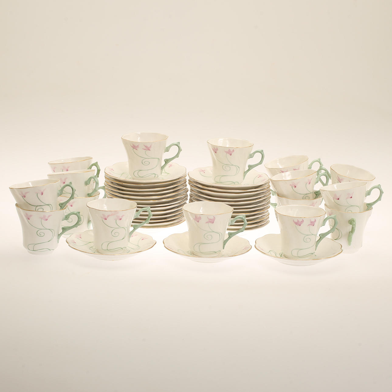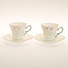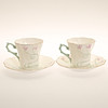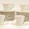 19 tazas altura aproximadamente 7,5 cm, diámetro aproximadamente 8 cm, con plato diámetro aproximadamente 14 cm.