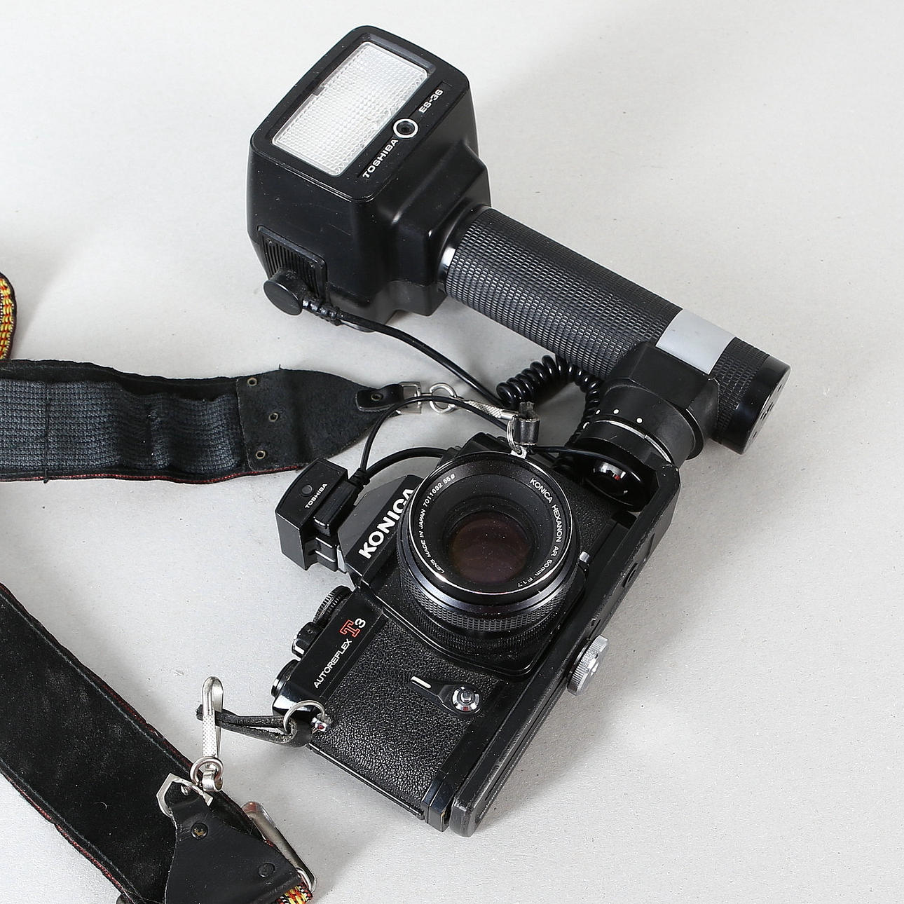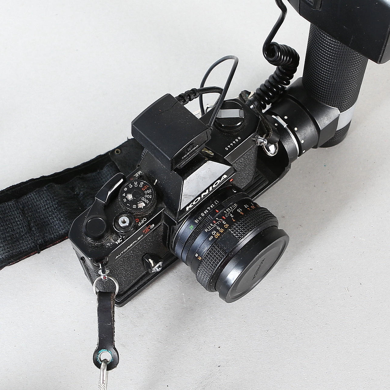 CAMARA KONICA AUTOREFLEX T3, con varias lentes y flash.