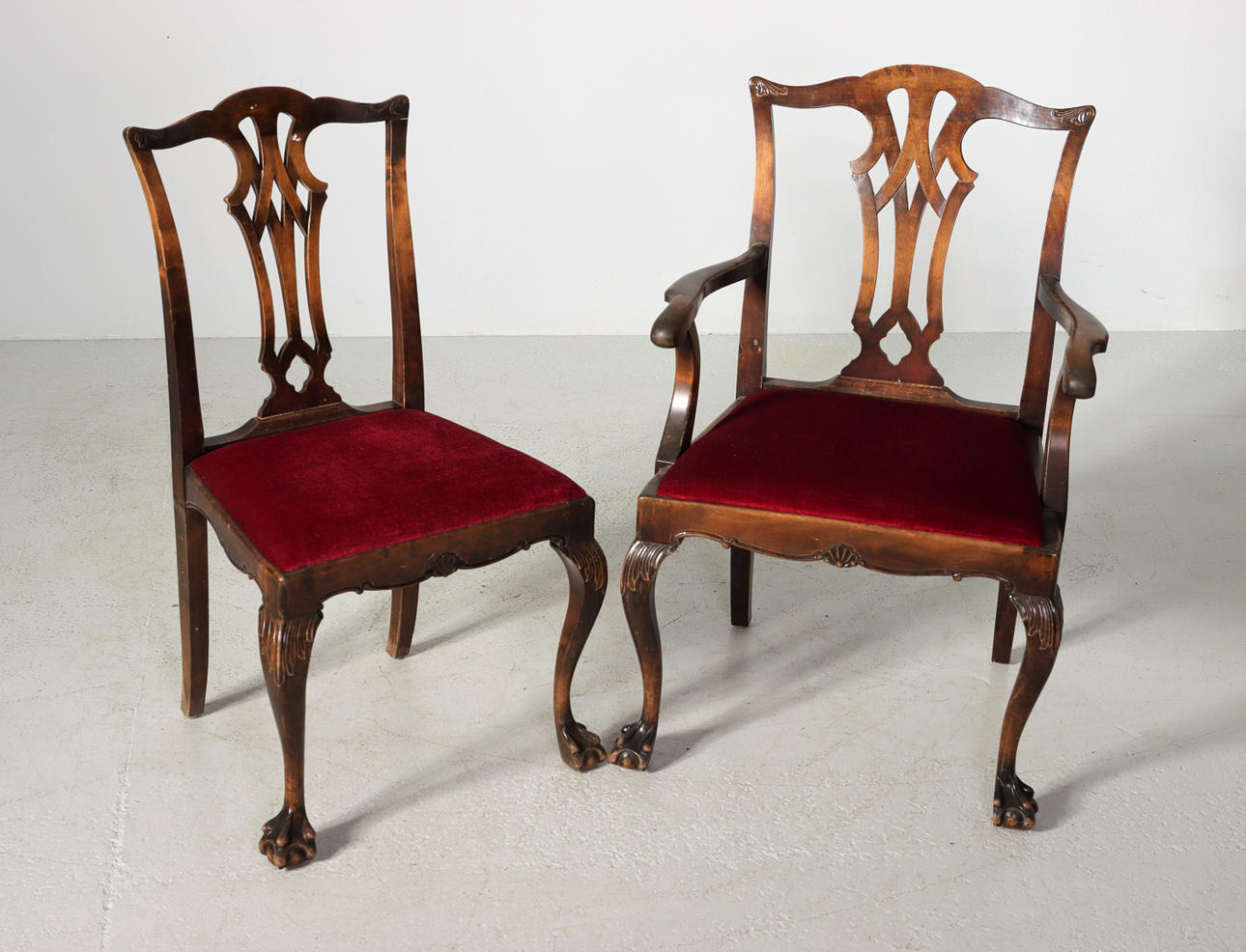 1849068. MESA DE COMEDOR Y SILLAS estilo Chippendale 1900.