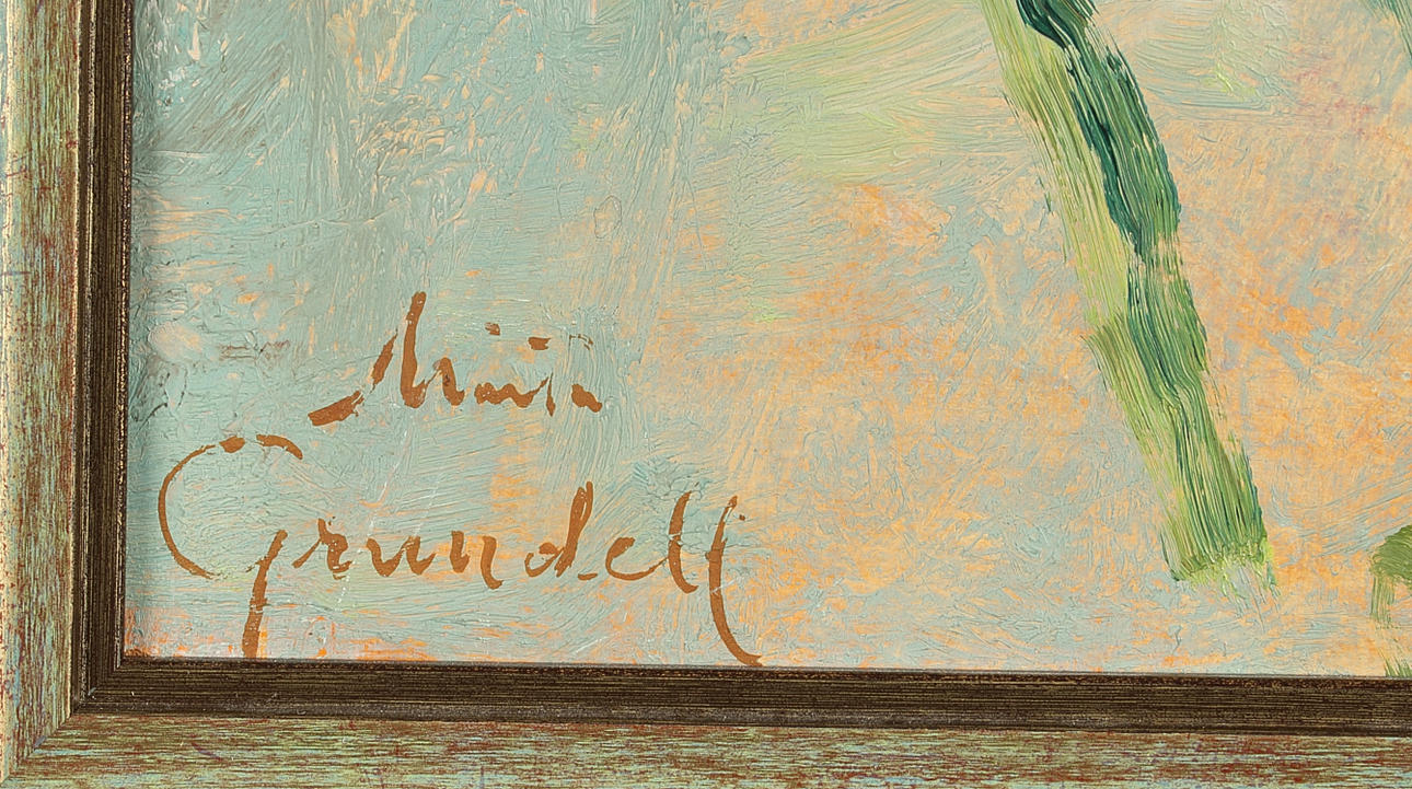 MARIA GRUNDEL. BODEGÓN DE FLORES, óleo sobre Tabla.