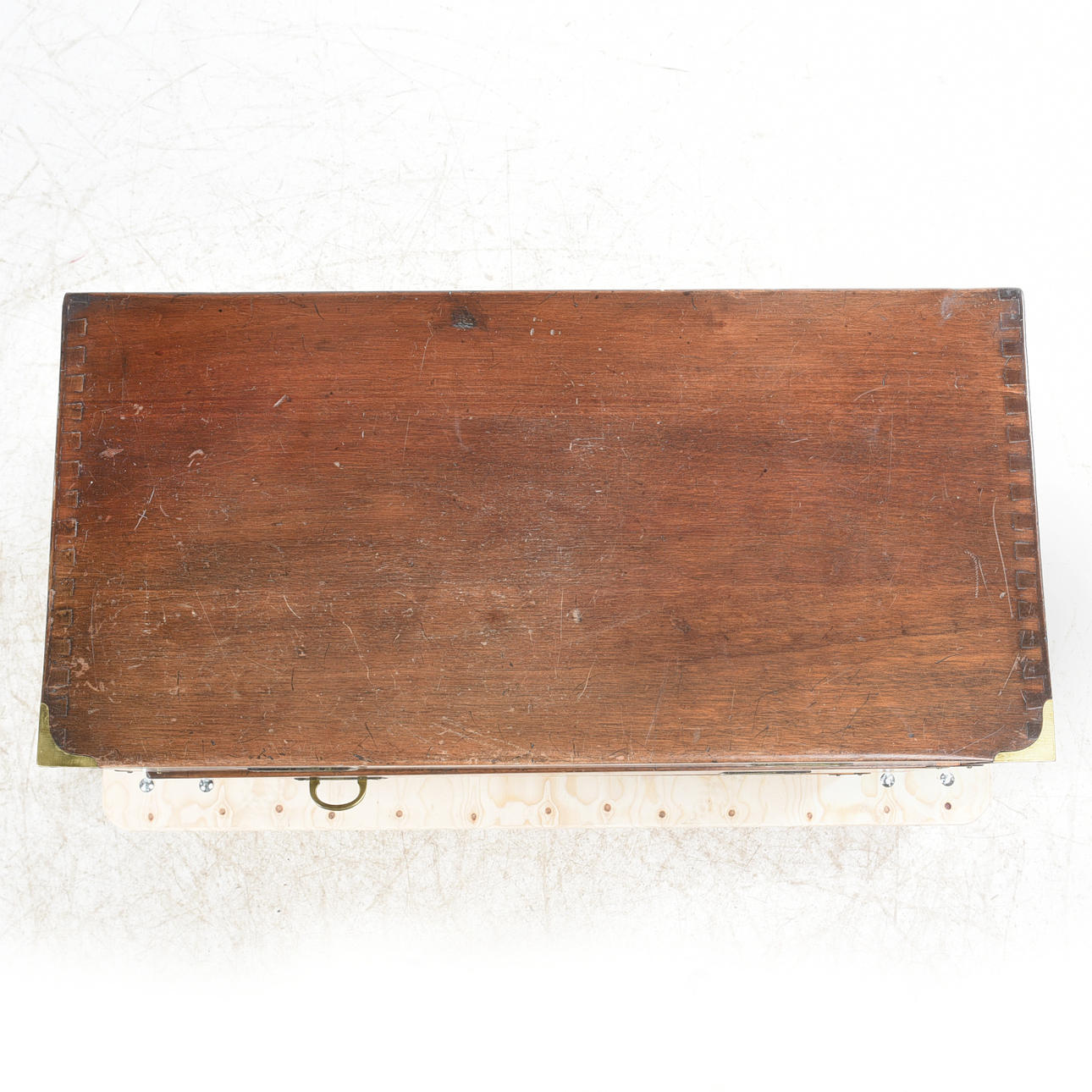 Madera maciza teñida, herrajes de latón. La última parte del siglo XX. H aproximadamente 81 cm. 81 x 40 cm aprox.