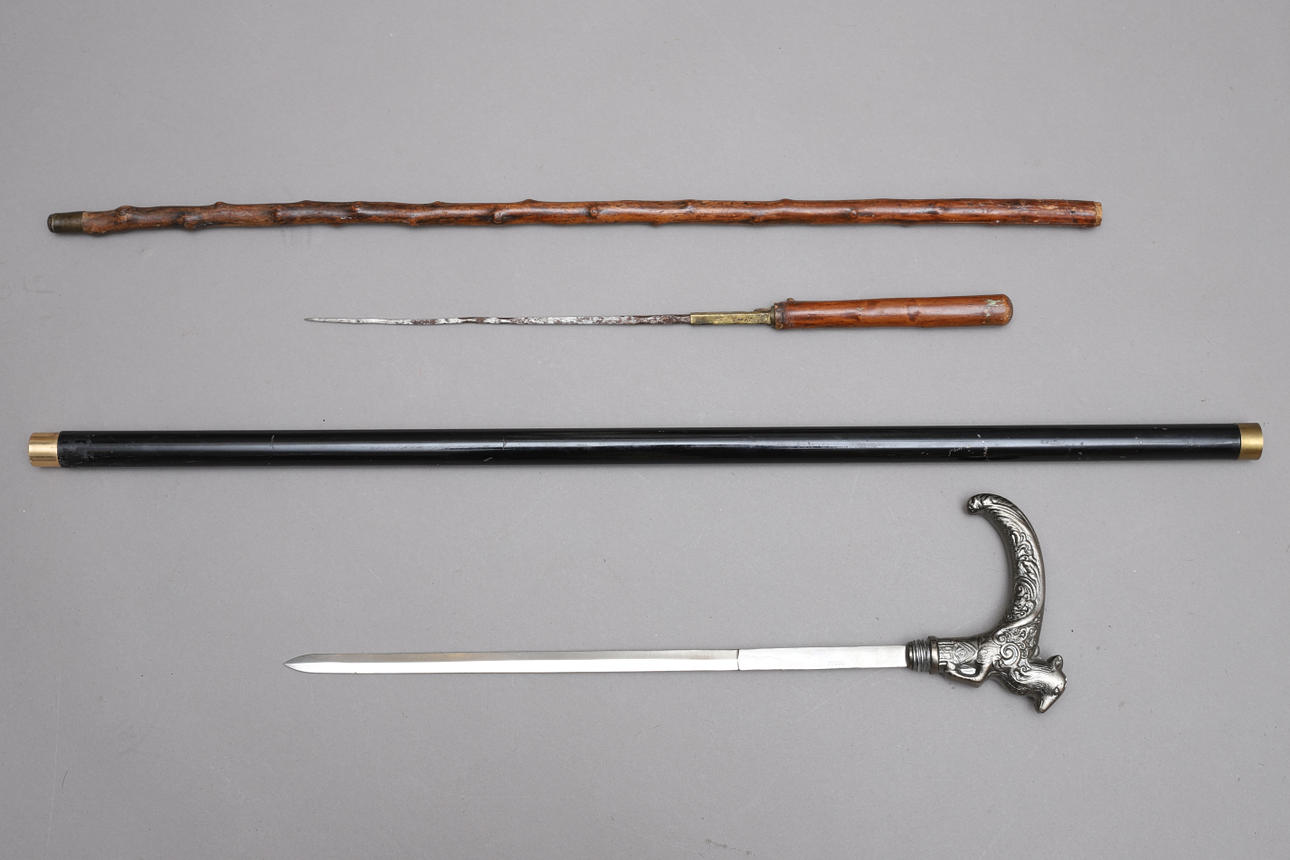 1862963. BASTONES CON DAGA, 2 uds, madera y metal.