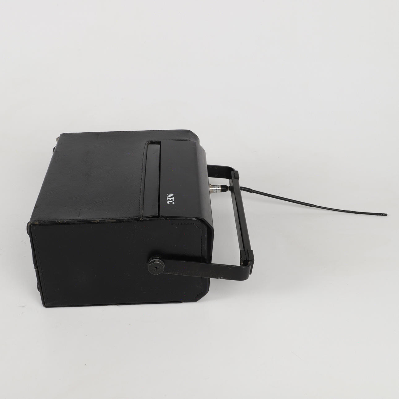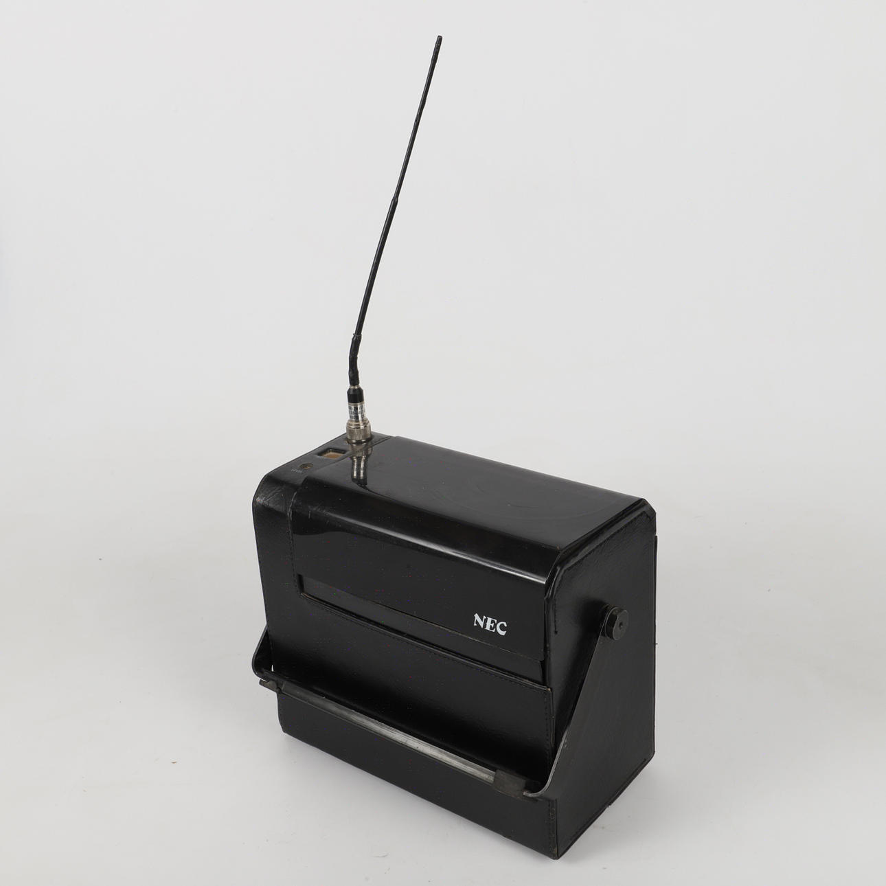 Alto 26, sin asa ni antena, largo 29, ancho 15 cm.