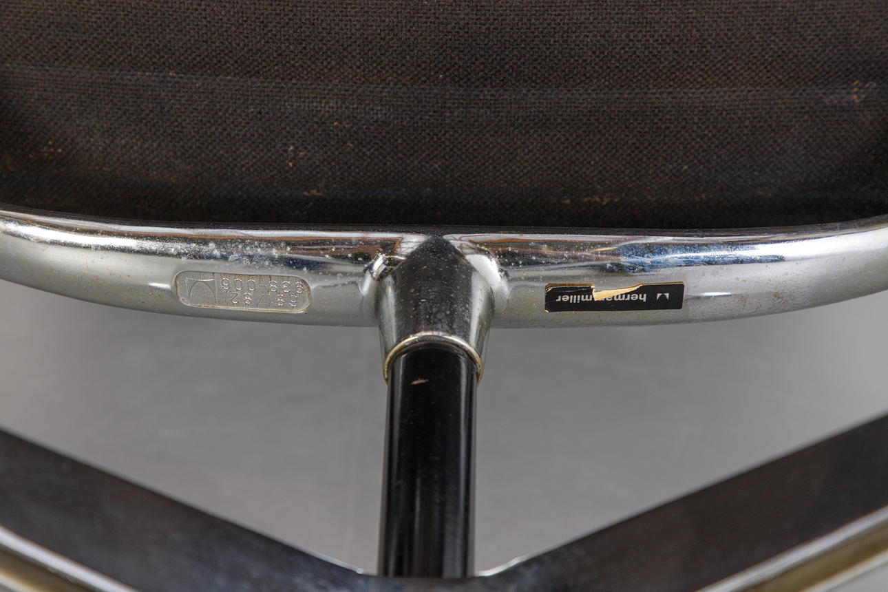 Borrador de 1958. Producida por Herman Miller. Aluminio, giratorio. Tapizado con Hopsak. Alto x Ancho: 90x62cm.
