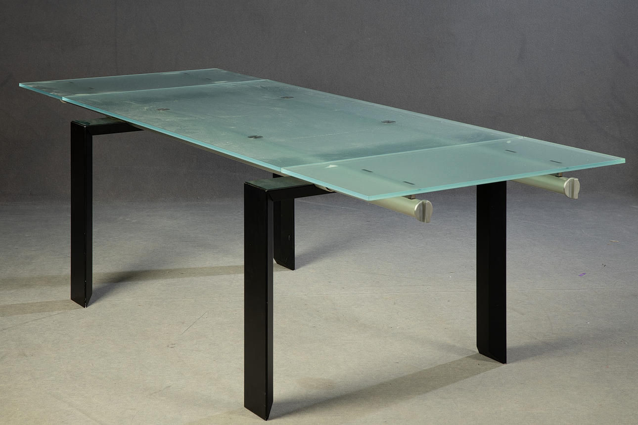 1872225. DESALTO, mesa extensible / mesa de cristal 'Zanquitos'.