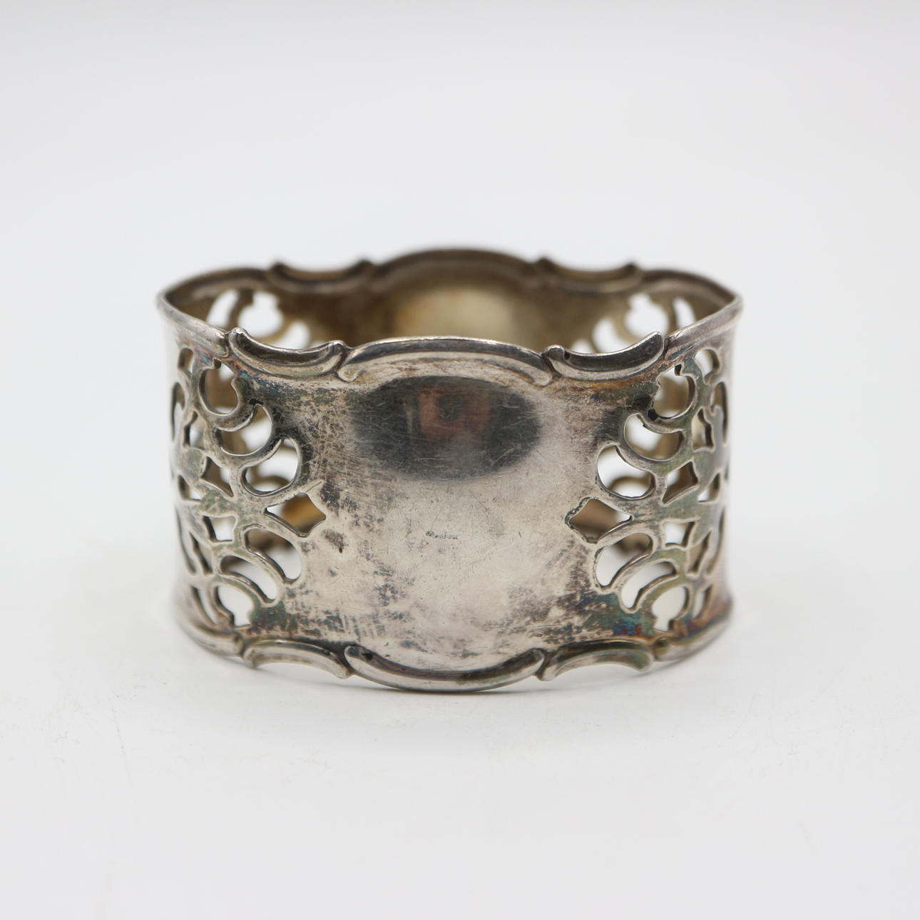 Grupo de 3 servilleteros envejecidos bañados en plata.