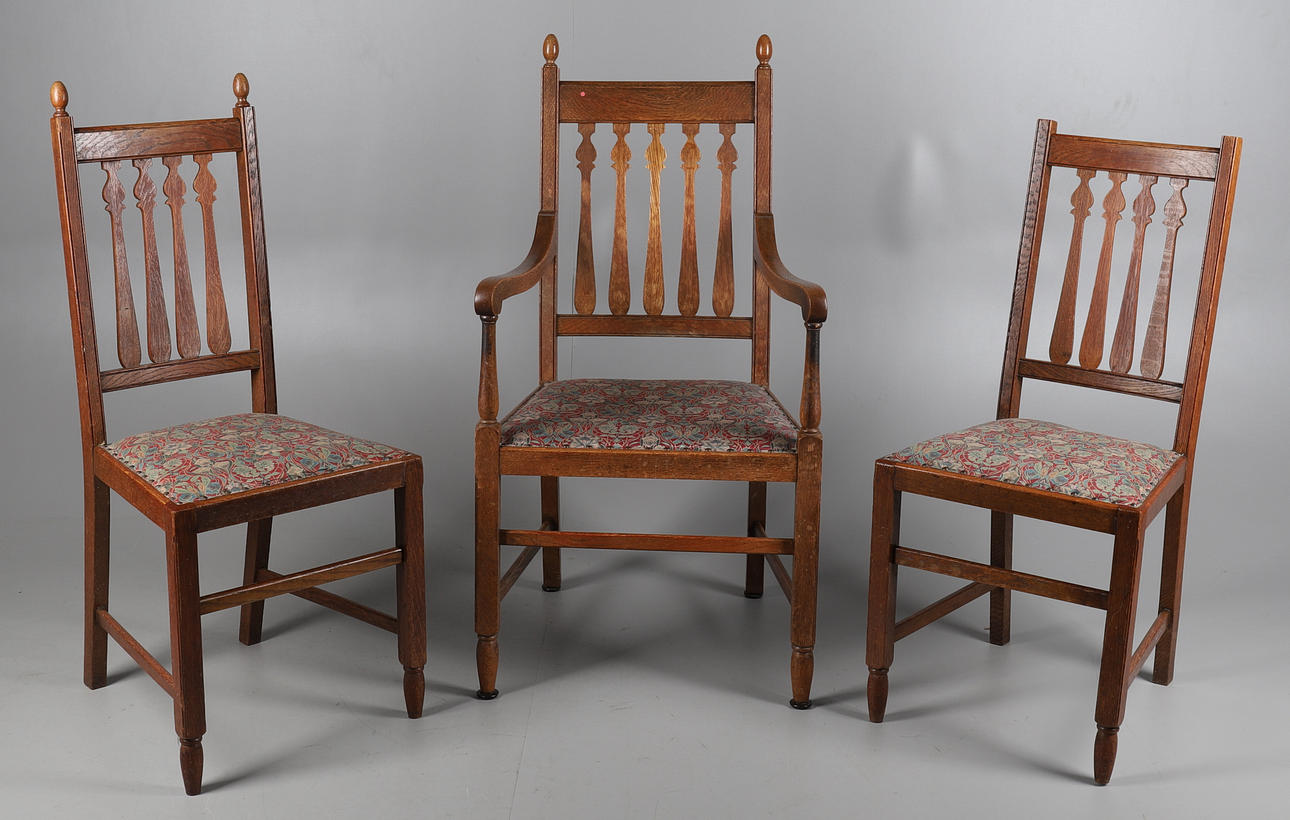1880514. TRES SILLAS ARTS AND CRAFTS ROBLE.