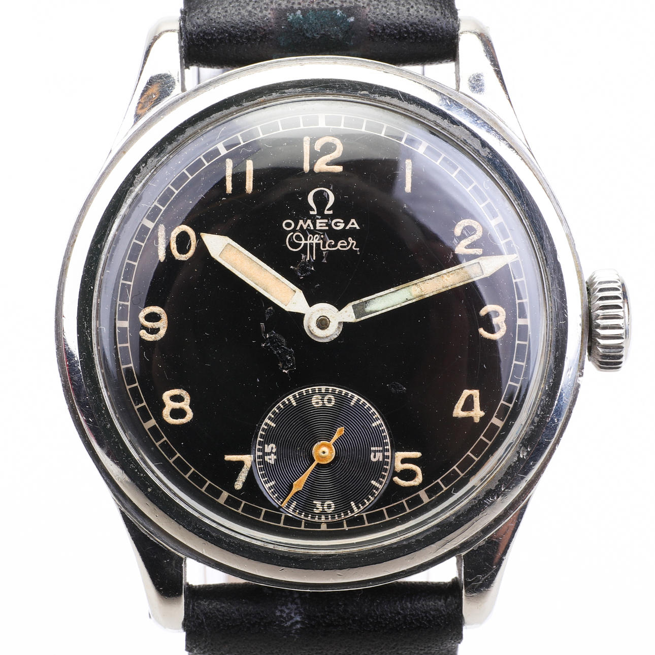 Buen estado usado. Hay un par de daños en el dial. El vidrio está en buenas condiciones. La pulsera no es original. Trabajado en el momento de la catalogación. No se proporciona ninguna garantía funcional.
