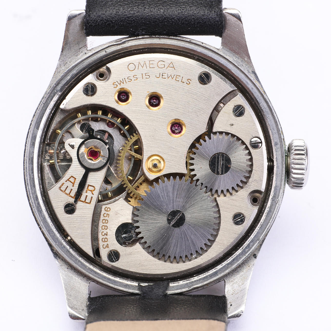 Caja de acero, esfera negra, 15 rubíes, movimiento manual. Antimagnético, resistente al agua, a prueba de golpes.