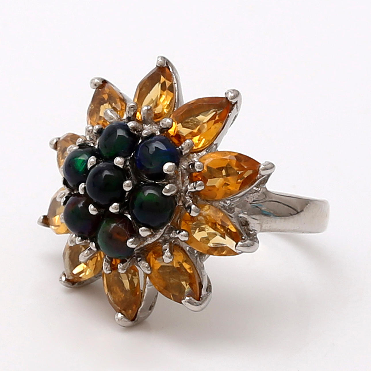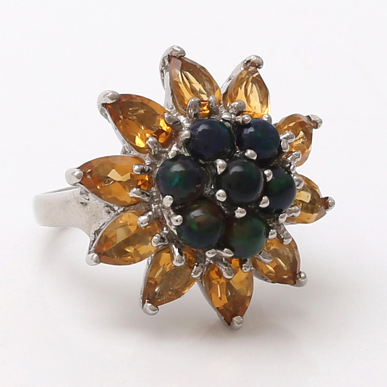 Plata, citrinos y ópalos. Talla 14/54. 8,3 gr.