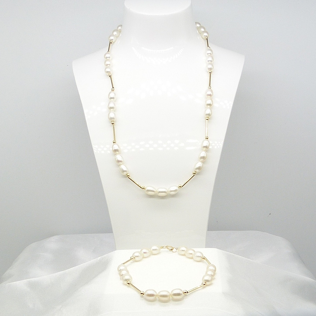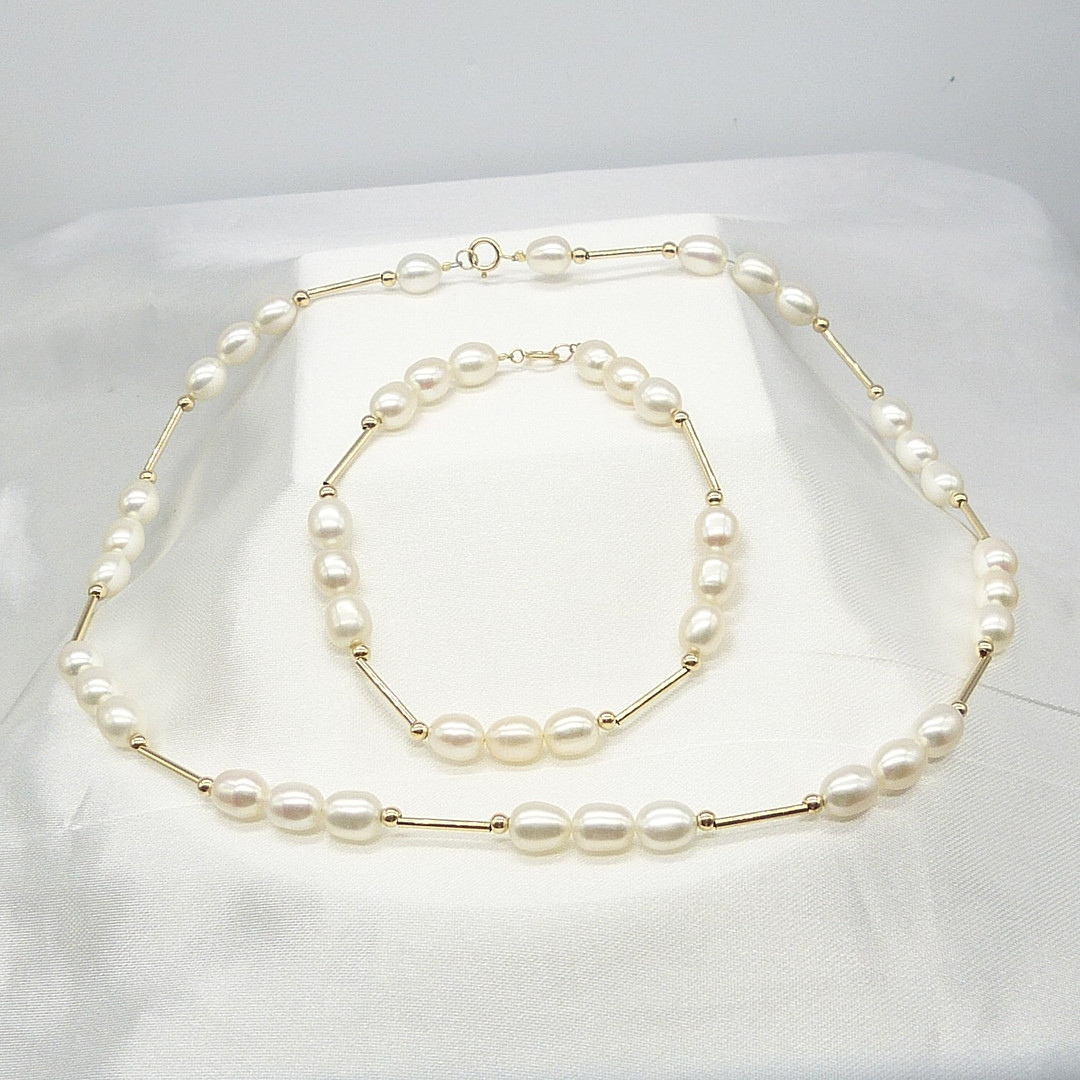 1888357. CONJUNTO DE COLLAR Y PULSERA DE PERLAS.