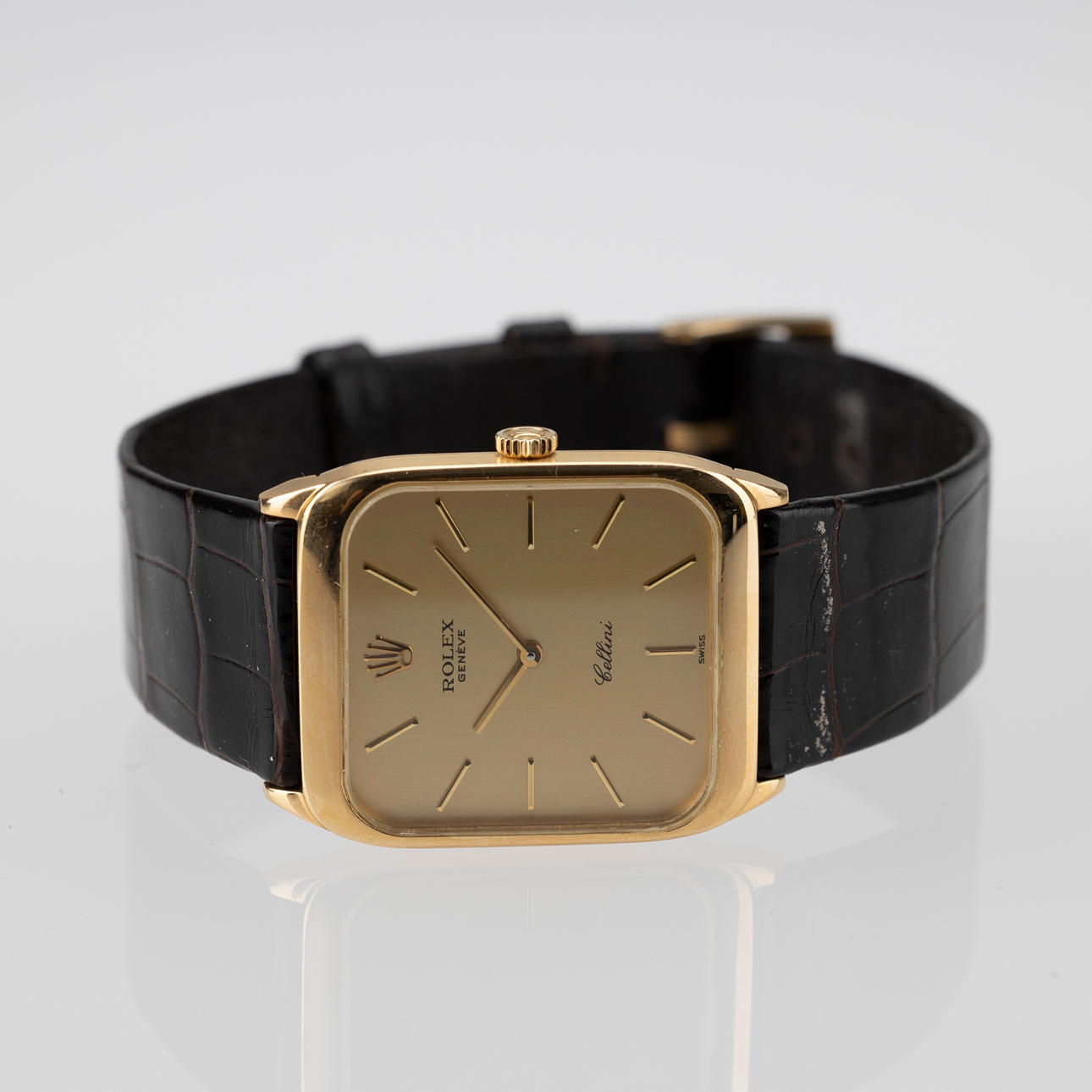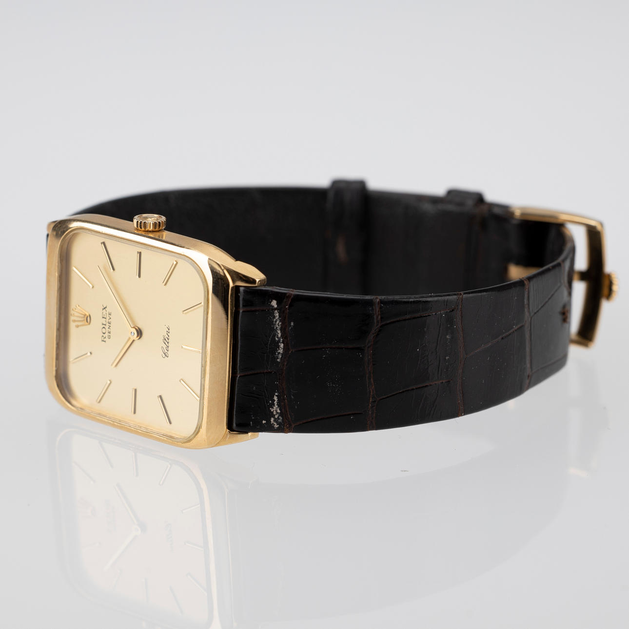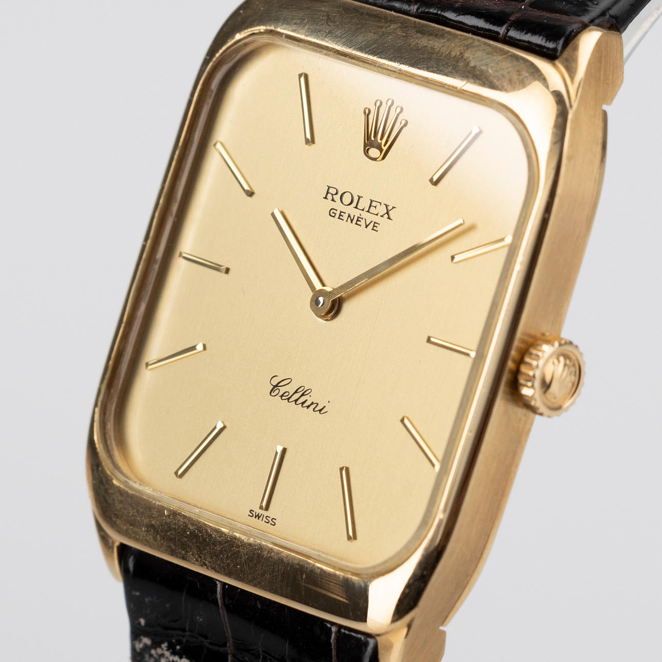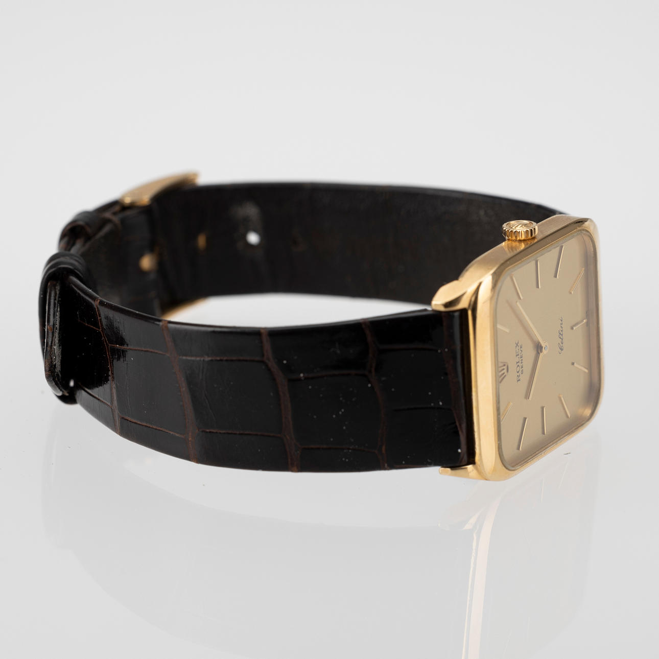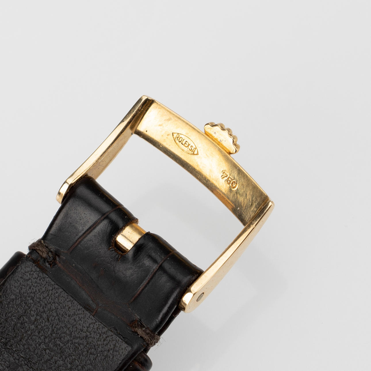 27 x 31 (36), manual, cristal de zafiro, correa de piel, hebilla original en oro de 18 quilates, nº de referencia 4135-8, nº de serie 6908144, certificado 1990, estuche.