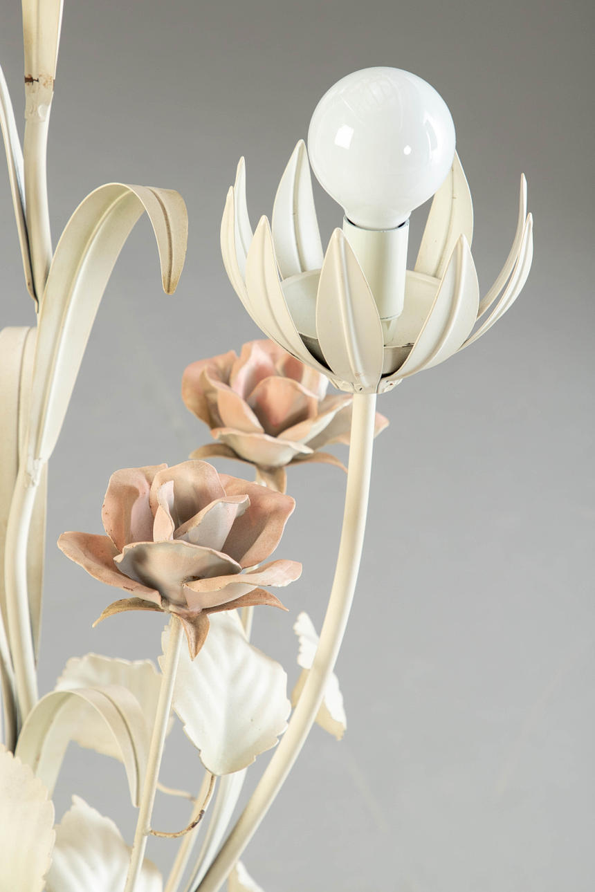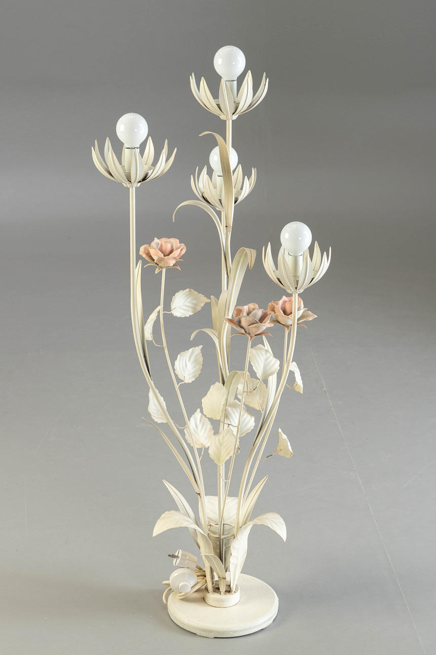 Lámpara de pie floral, estilo Hollywood Regency.