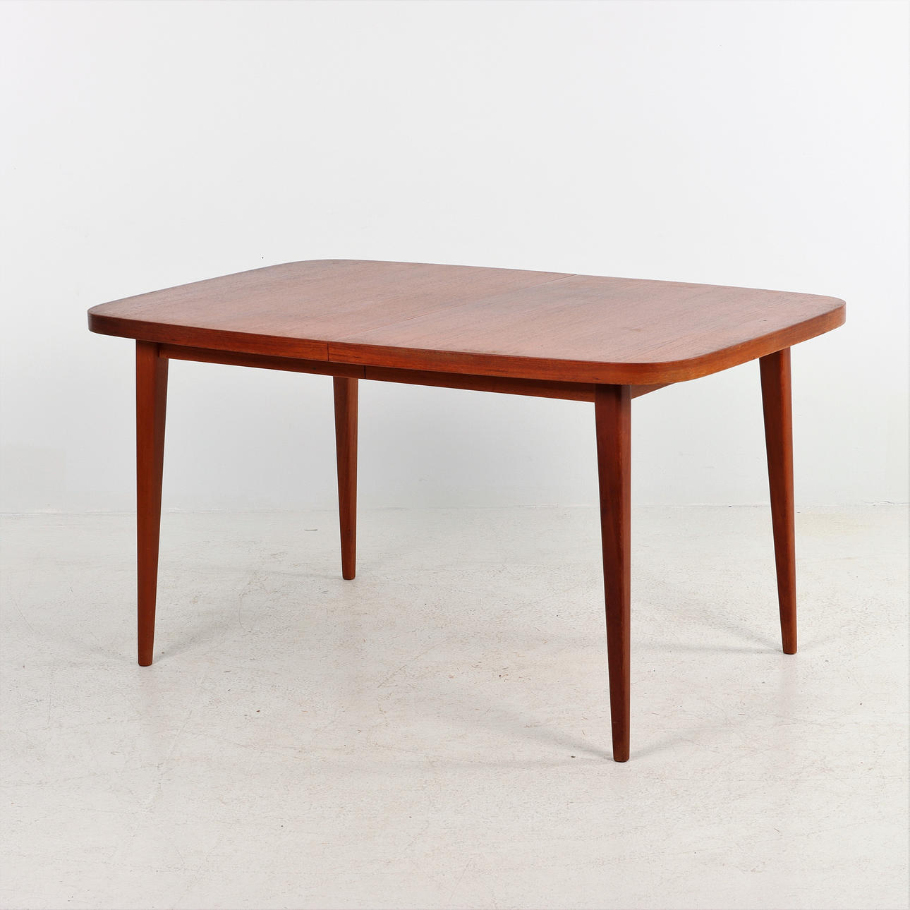 Mesa de comedor con 1 inserción, esquinas redondeadas.