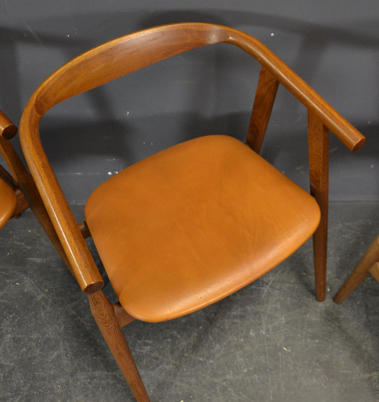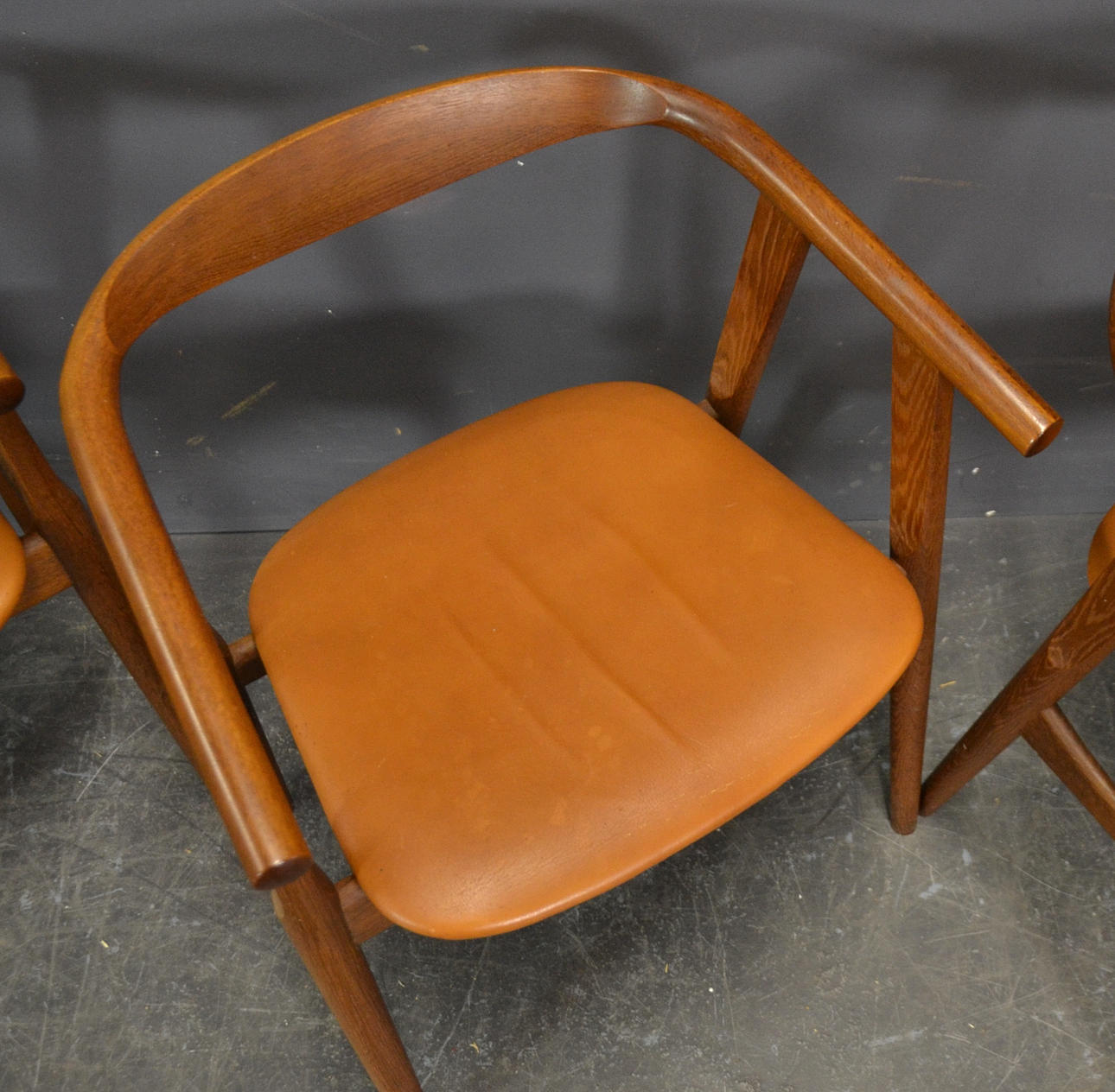 Diseño Hans J. Wegner Producido por Getama Modelo Sillas GE 525 Estructura en roble, sillas tapizadas en cuero.