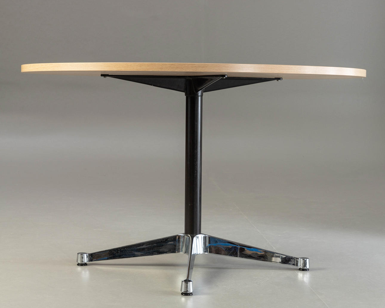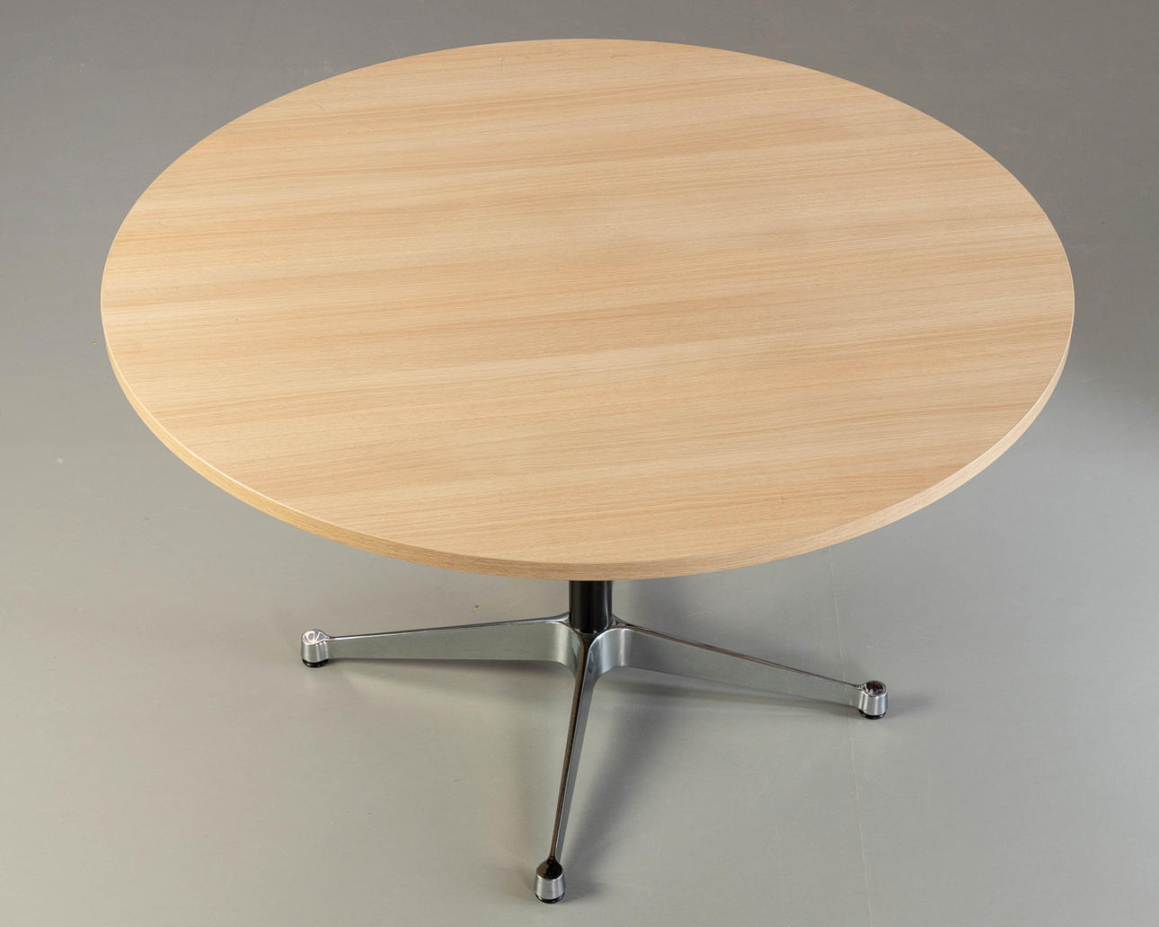 Estructura de aluminio de Charles & Ray Eames para Vitra con tapa de madera laminada. Alt. 72 cm, Ø 119 cm.