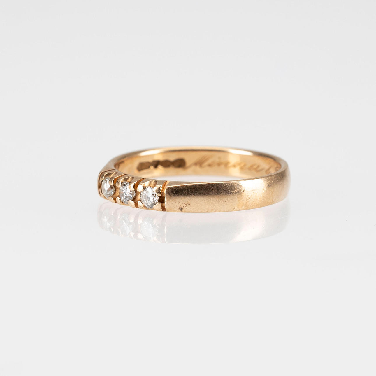 Diamantes en total aproximadamente 0,15 ct, tamaño 17,5, peso aproximado 2,7 g.