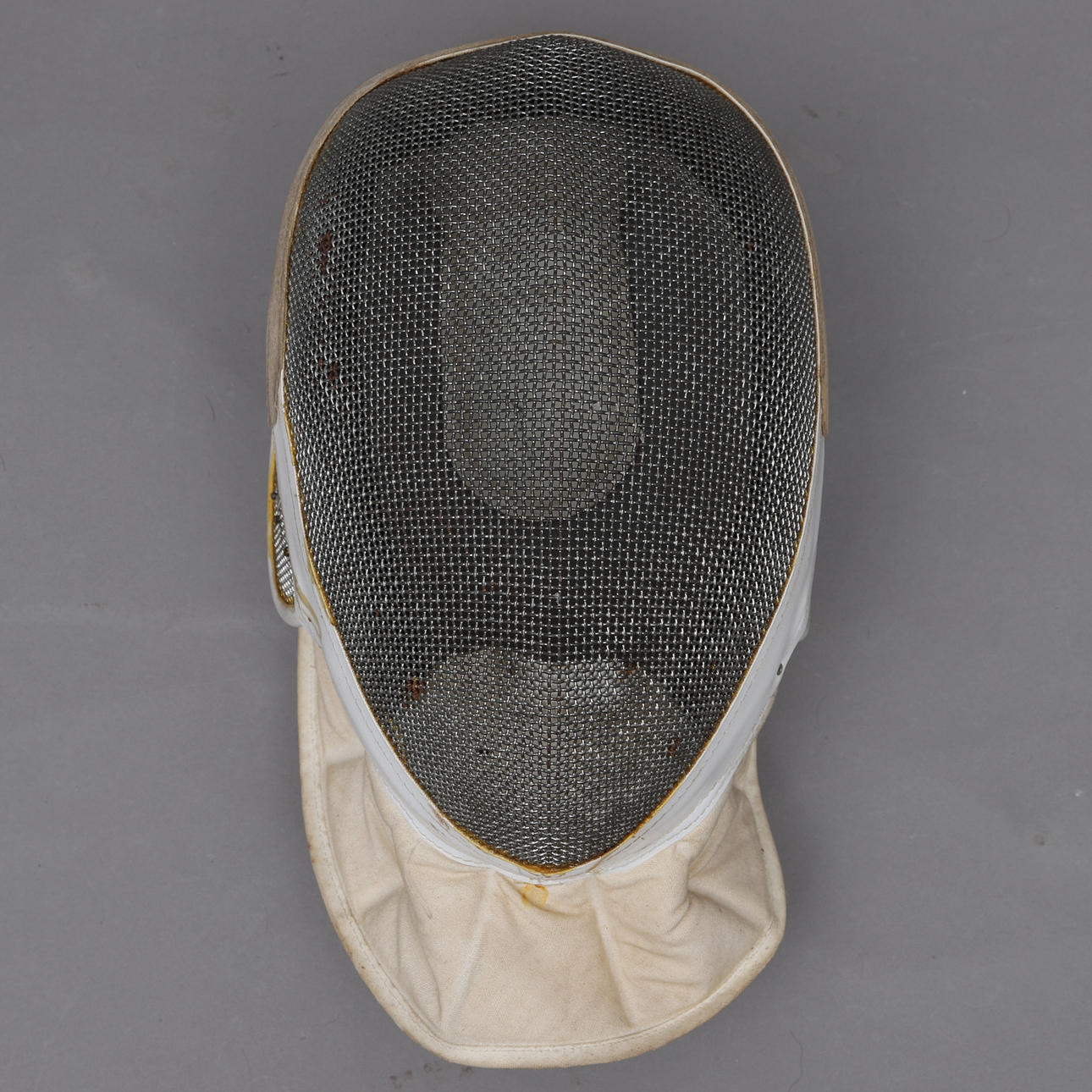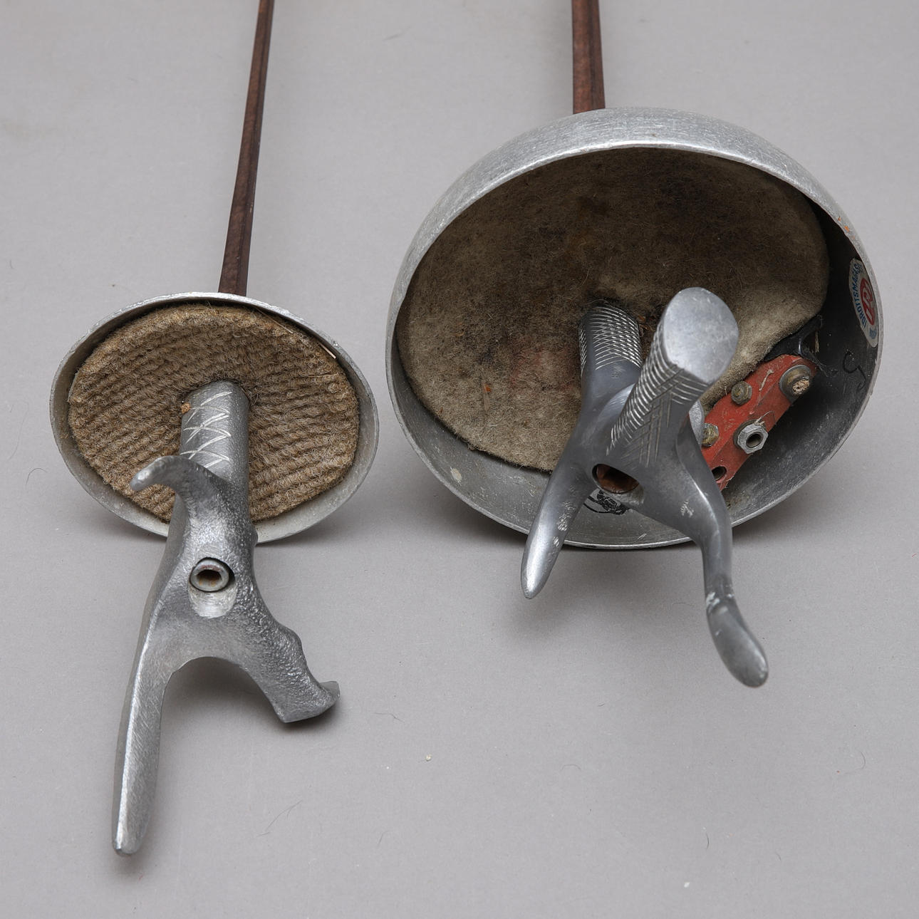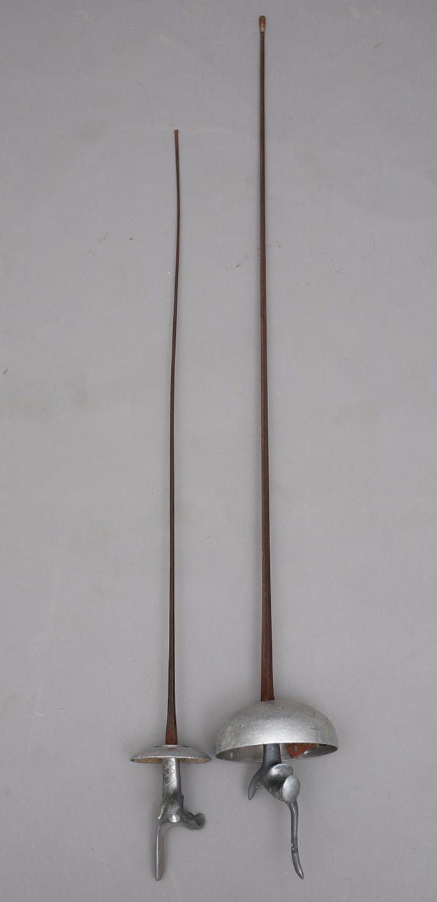 Casco de esgrima, Paul. 2 espadas de esgrima de aproximadamente 91 y 107 cm de largo.