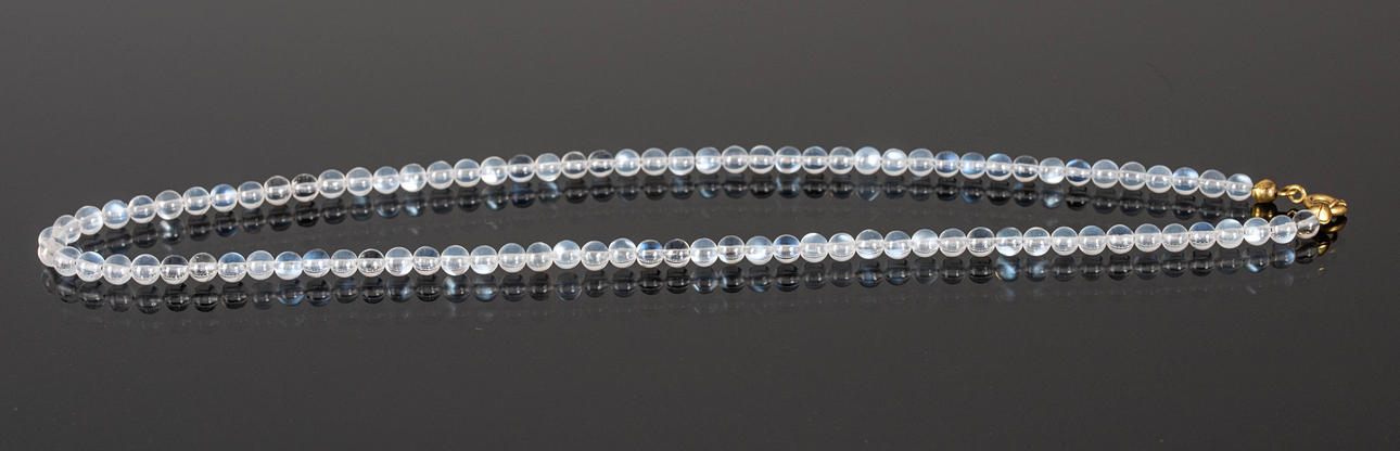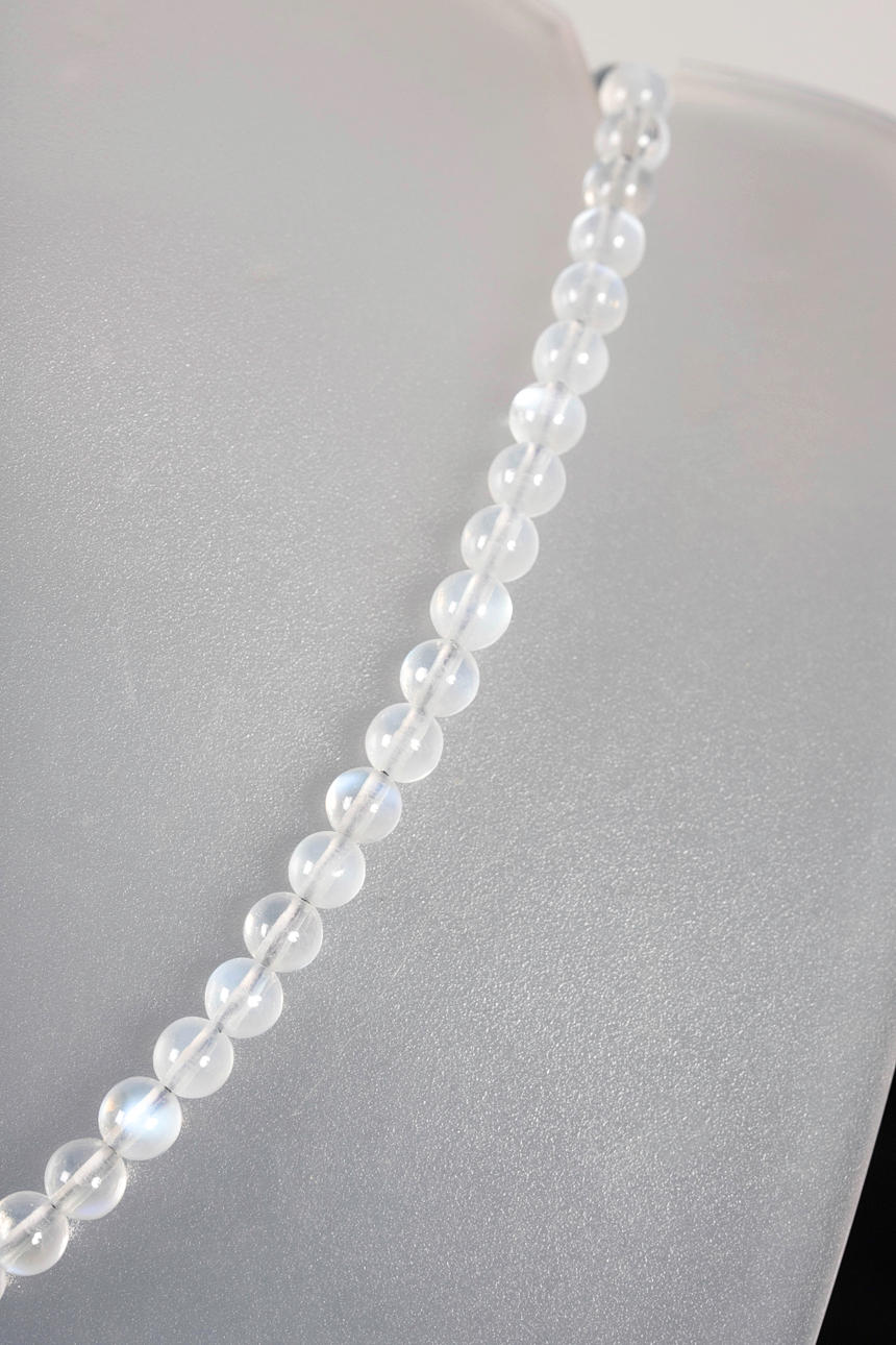 Collar con cuentas de piedra luna Ø aprox. 4,8 mm dimensiones aprox. Largo 42cm. Peso con cierre aprox. 65 centavos.