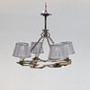 Diámetro aproximado 47 cm, altura aproximado 45 cm. 4 puntos de luz con pantallas textiles.