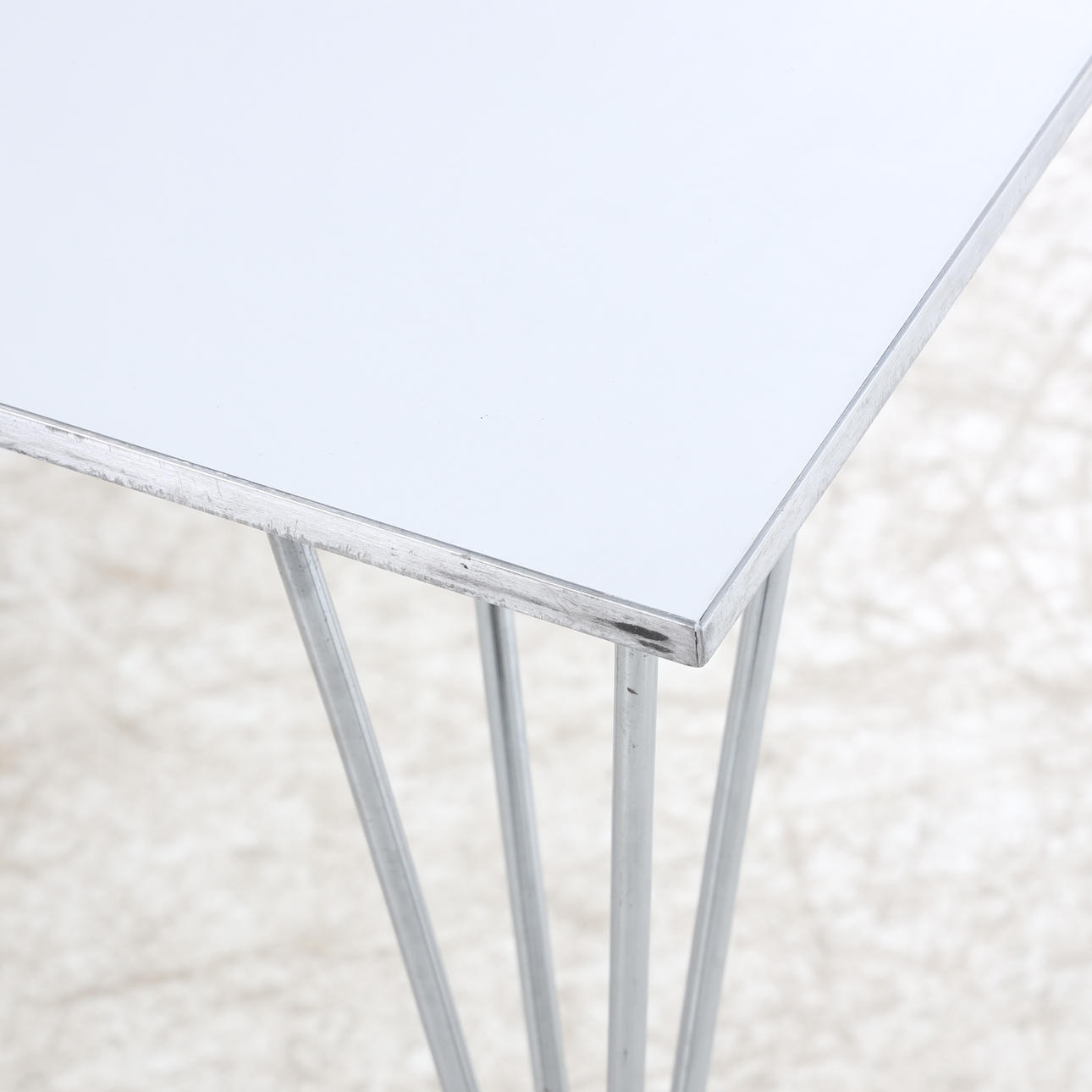 Encimera de laminado blanco con patas cromadas, rectangular, altura aproximada 71, 120x80 cm.