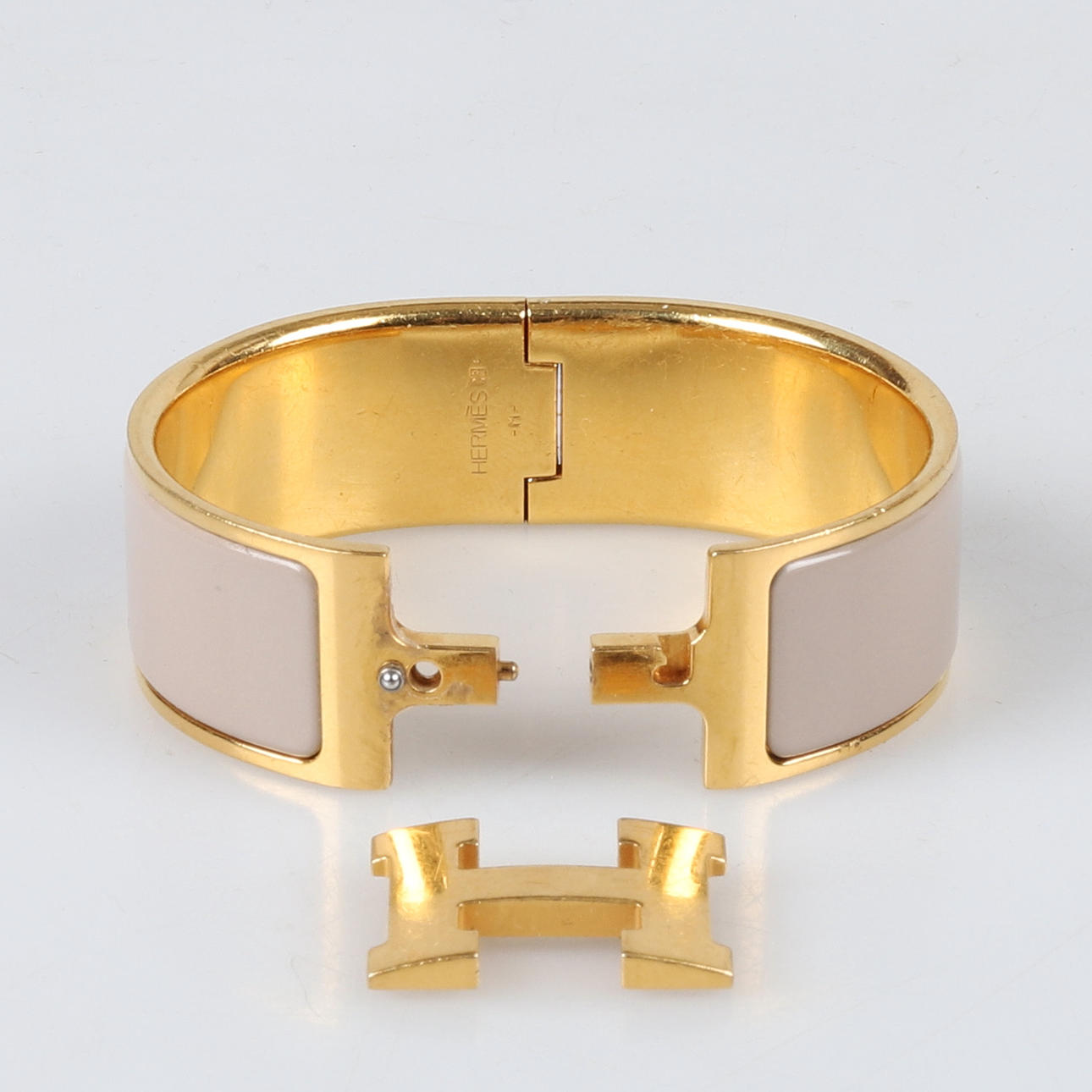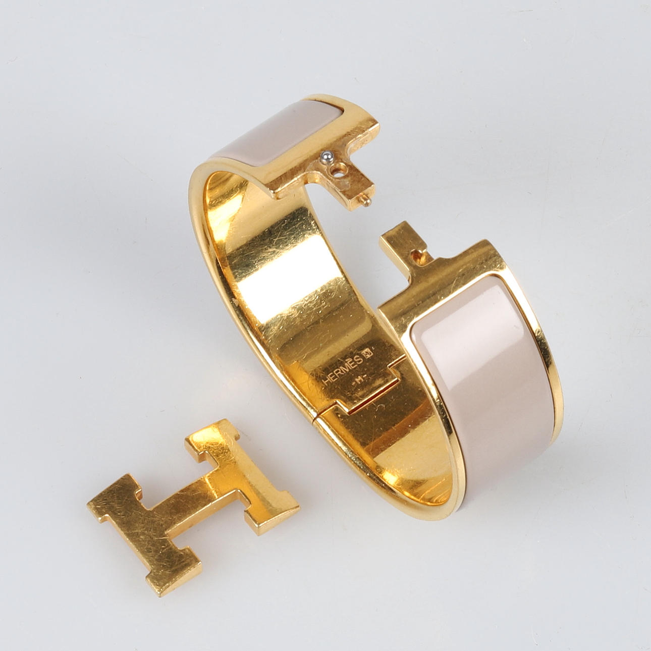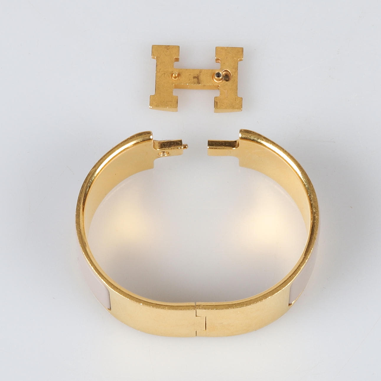 Pulsera de metal dorado con decoración de esmalte de Hermés Diámetro interior 5,5 cm.