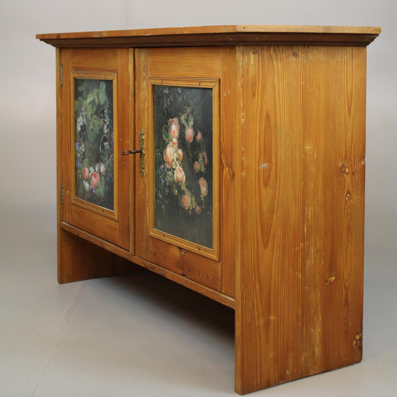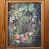 con imagen/pintura en las puertas detrás de un vidrio probablemente anterior armario superior para muebles más grandes Alto 65 cm, ancho 90 cm, profundidad 33 cm.