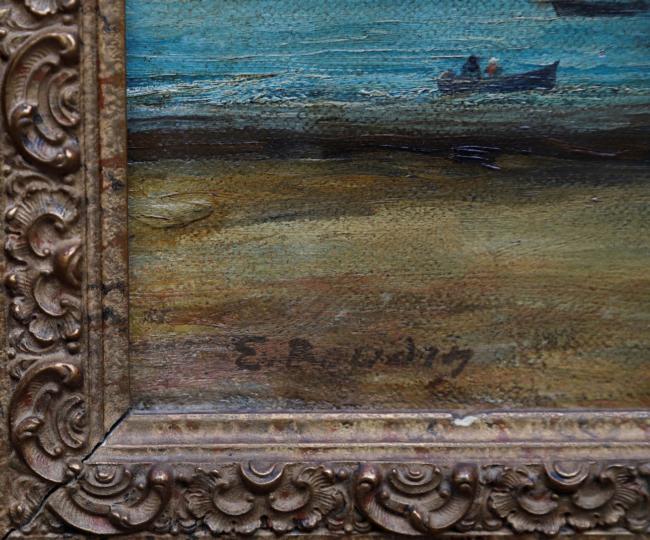 Con firma: "E. Boudin". Copia con variaciones del óleo sobre tabla de Boudin (34,8x57,5 cm) conservado en la National Gallery de Washington (nº inv. 1983.1.14)
