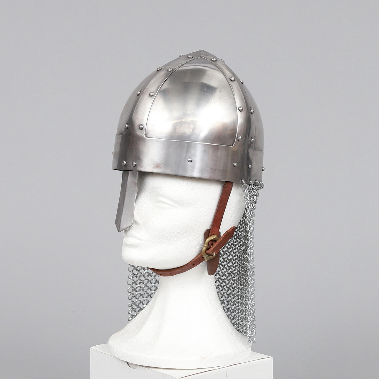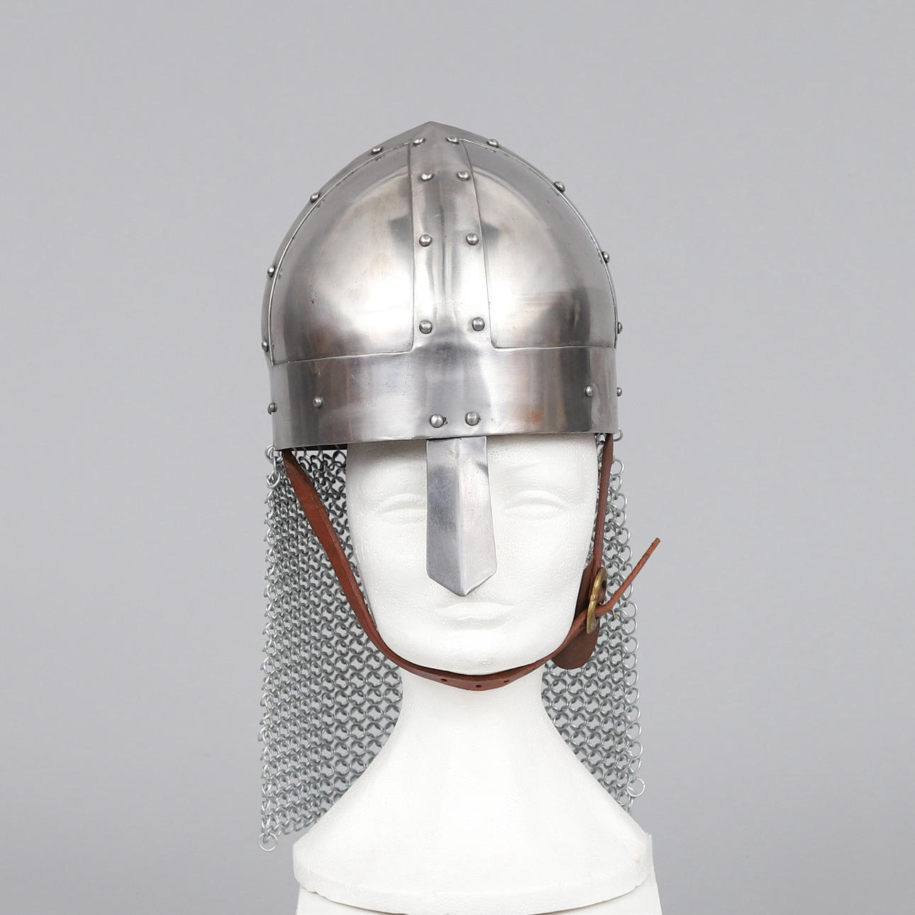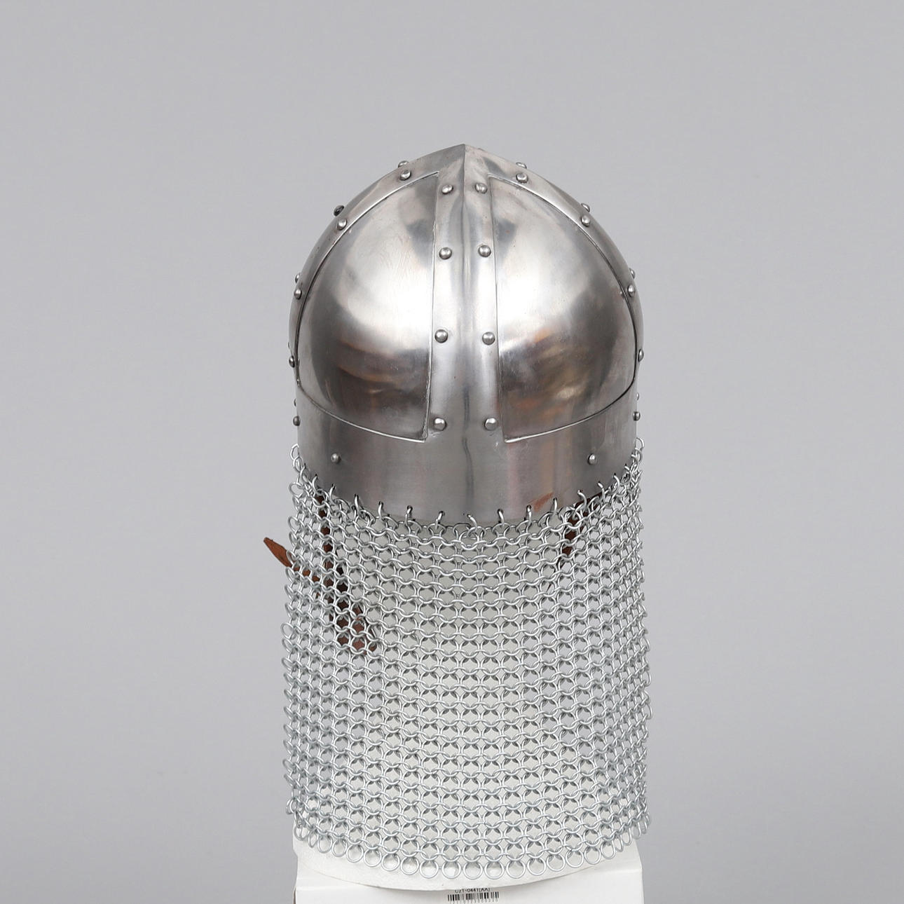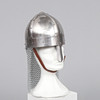Réplica de casco medieval con protección de nuca trenzada. Interior y barboquejo en piel.