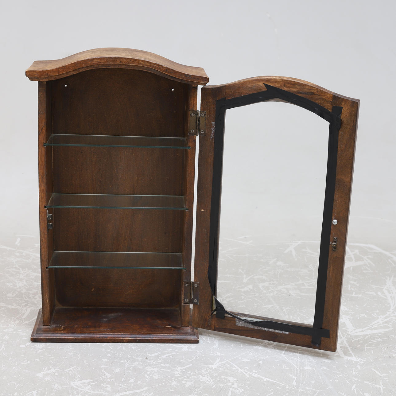 Puerta acristalada con balda de cristal detrás. Longitud 35. Ancho 15. Altura 60 cm.