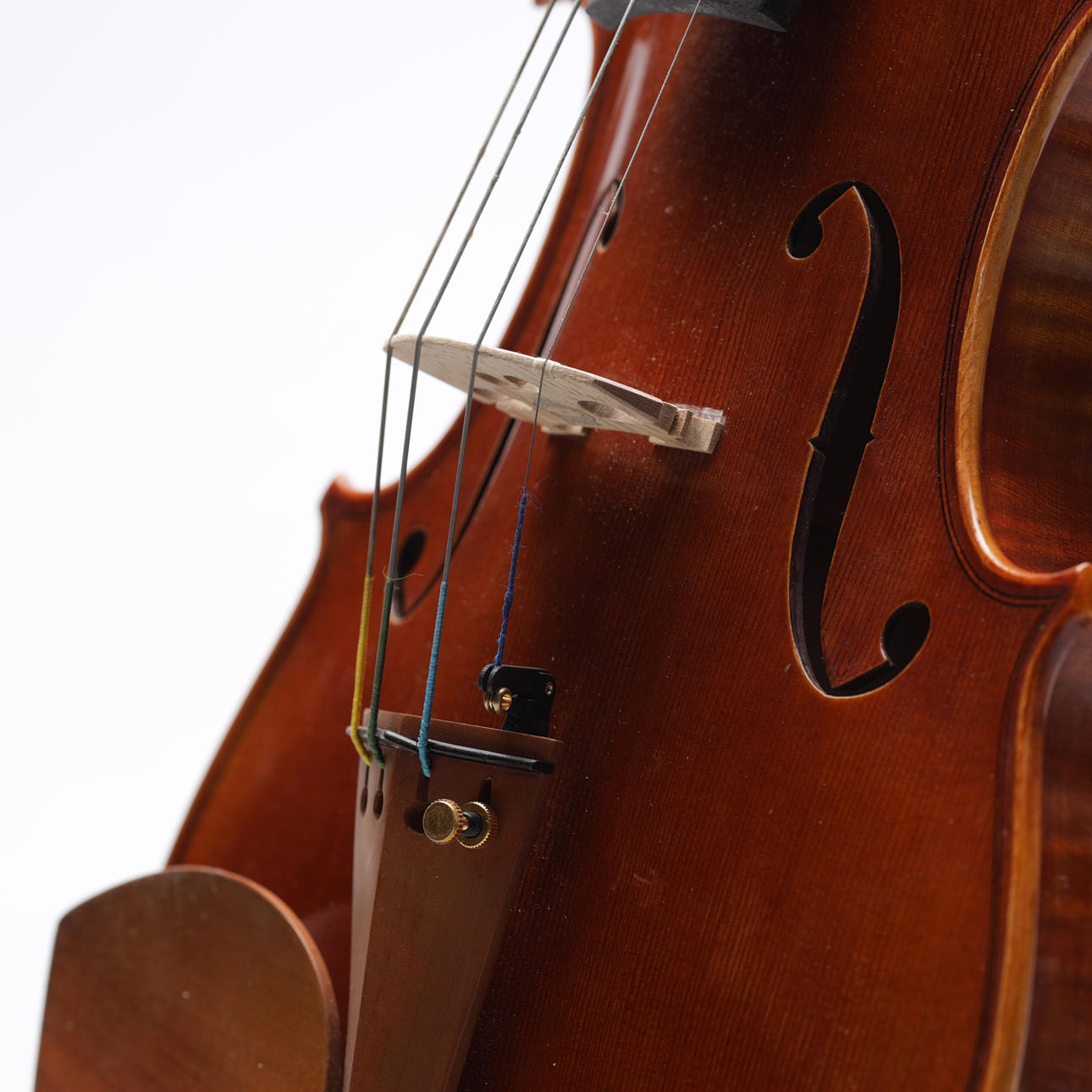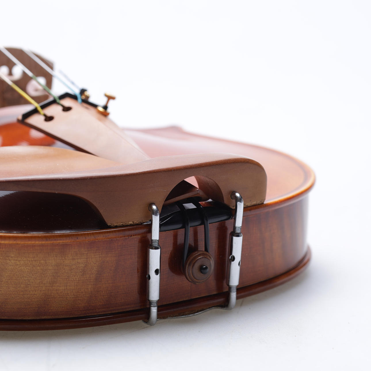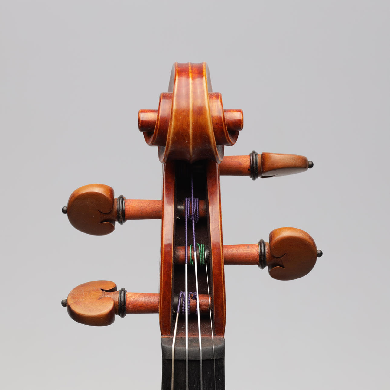 Violín hecho a mano con tapa en abeto y fondo en preciosa madera de arce flameado, superficie pulida a mano, diapasón en ébano y mentonera y mentonera en boj. Longitud del cuerpo aproximadamente 36 cm, longitud total aproximadamente 60 cm.
