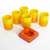 altura del vidrio aprox. 9 cm, dimensiones del plato 10x10 cm, altura 2,5 cm.