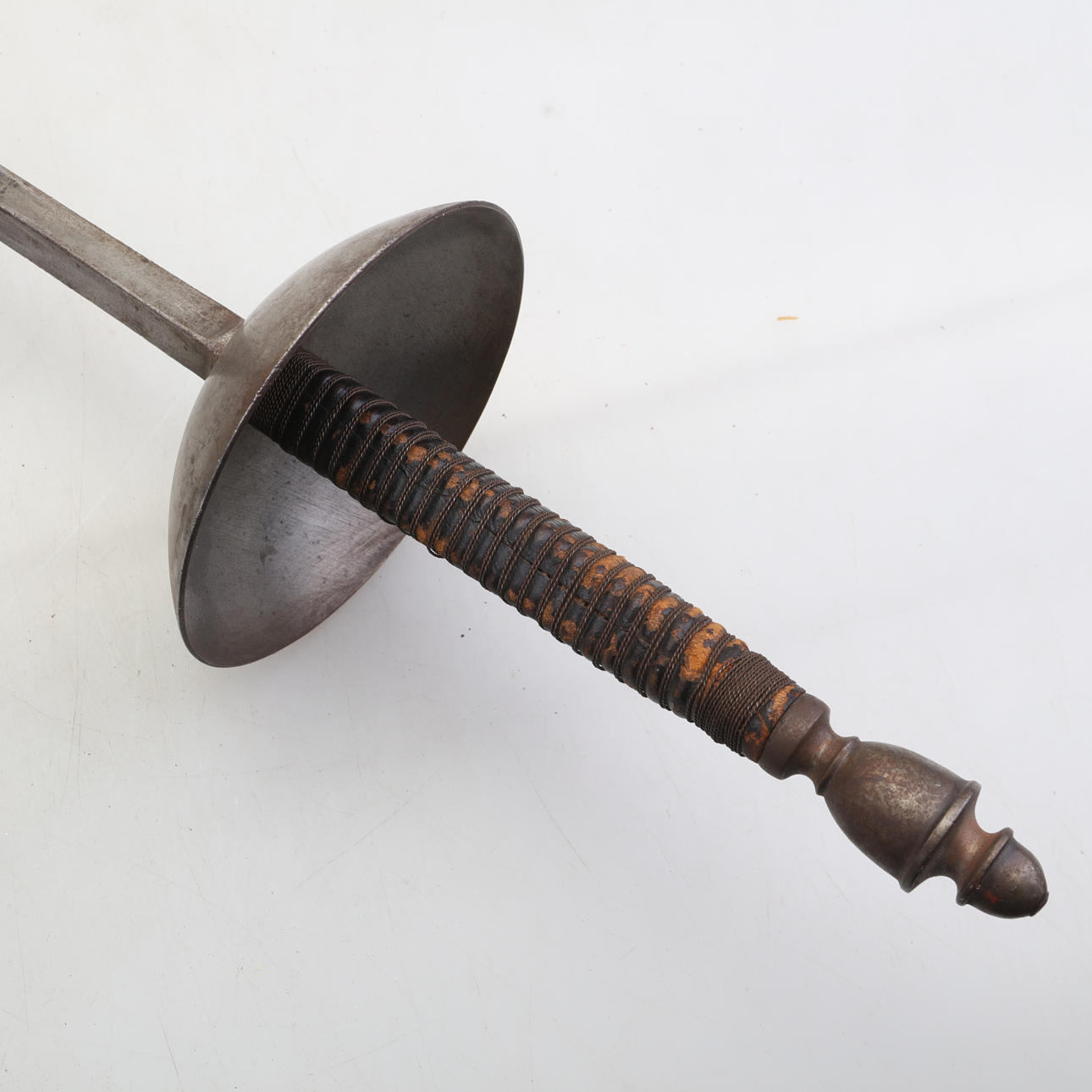Un florete de práctica con hoja de estuco fabricado por Coulaux Co en Klingenthal, la empresa fue de propiedad privada entre los años 1836-1962 antes de que fuera propiedad del estado y es un conocido fabricante principalmente de armas de filo militar.