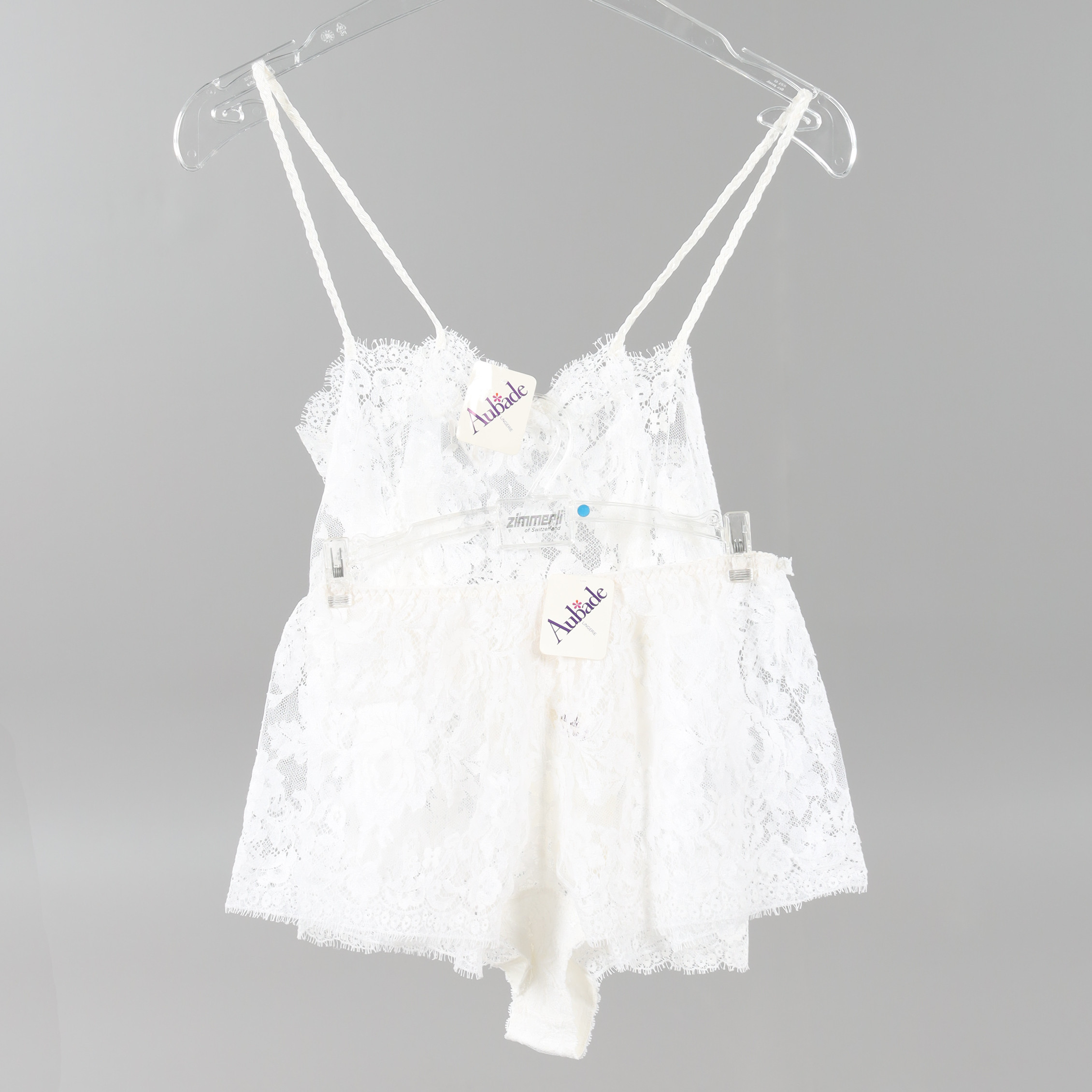 2005564. AUBADE PARIS, 3 dlr, engastado en encaje blanco.