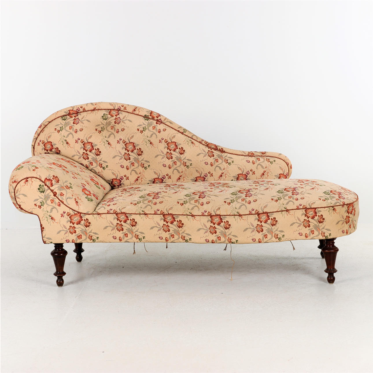 Diván con patas torneadas y respaldo curvo. Suecia alrededor de 1870-90 Altura 92 cm Altura del asiento 44 cm Longitud 185 cm Profundidad 80 cm.