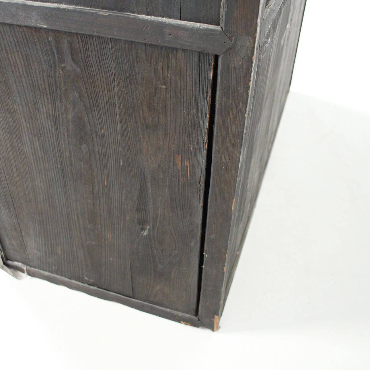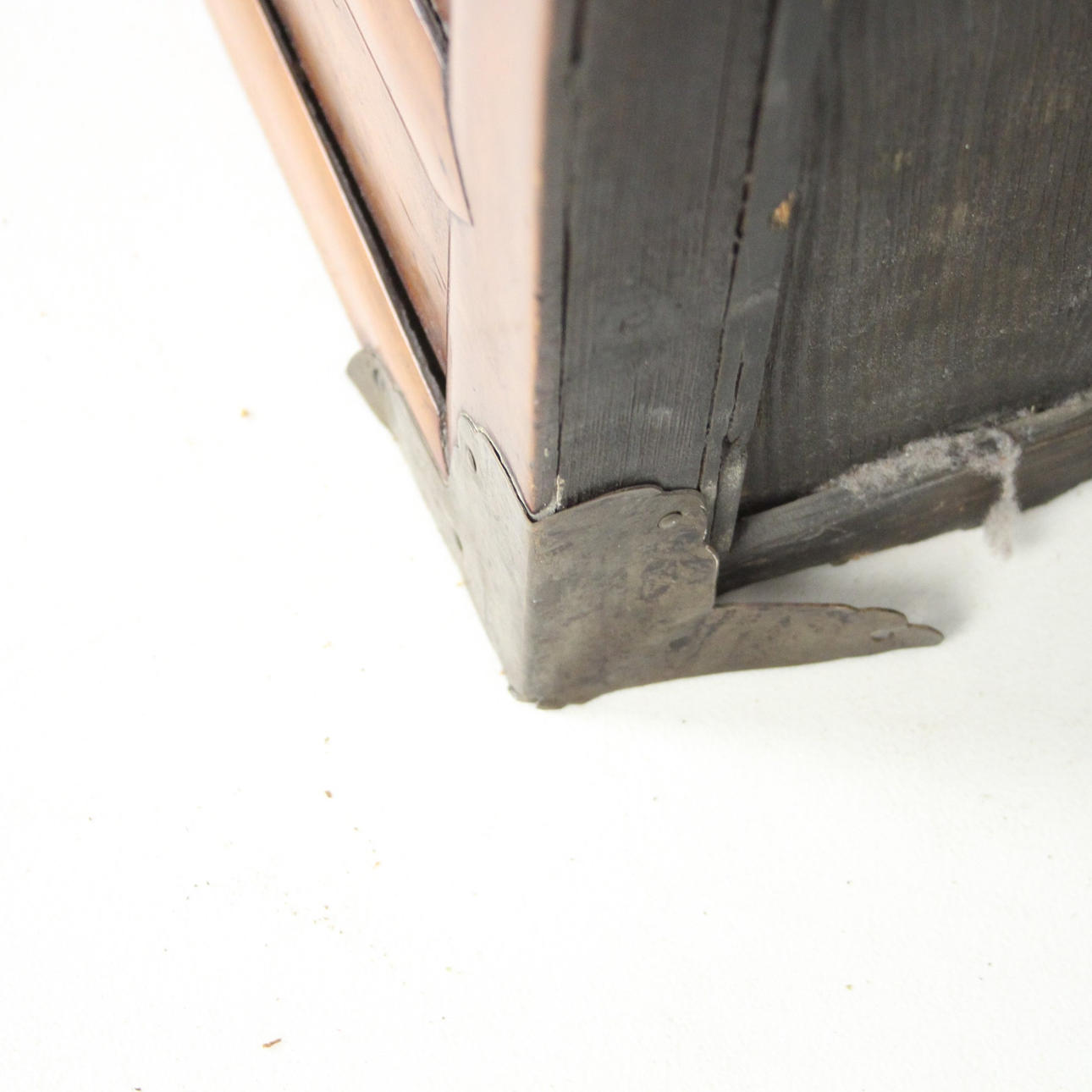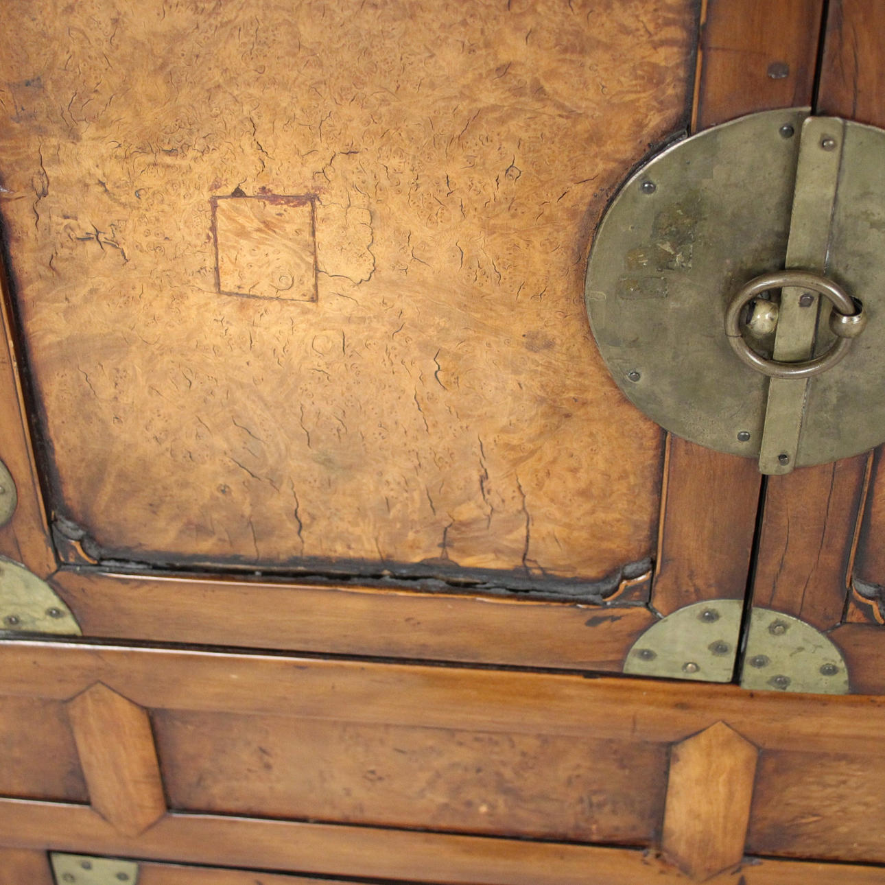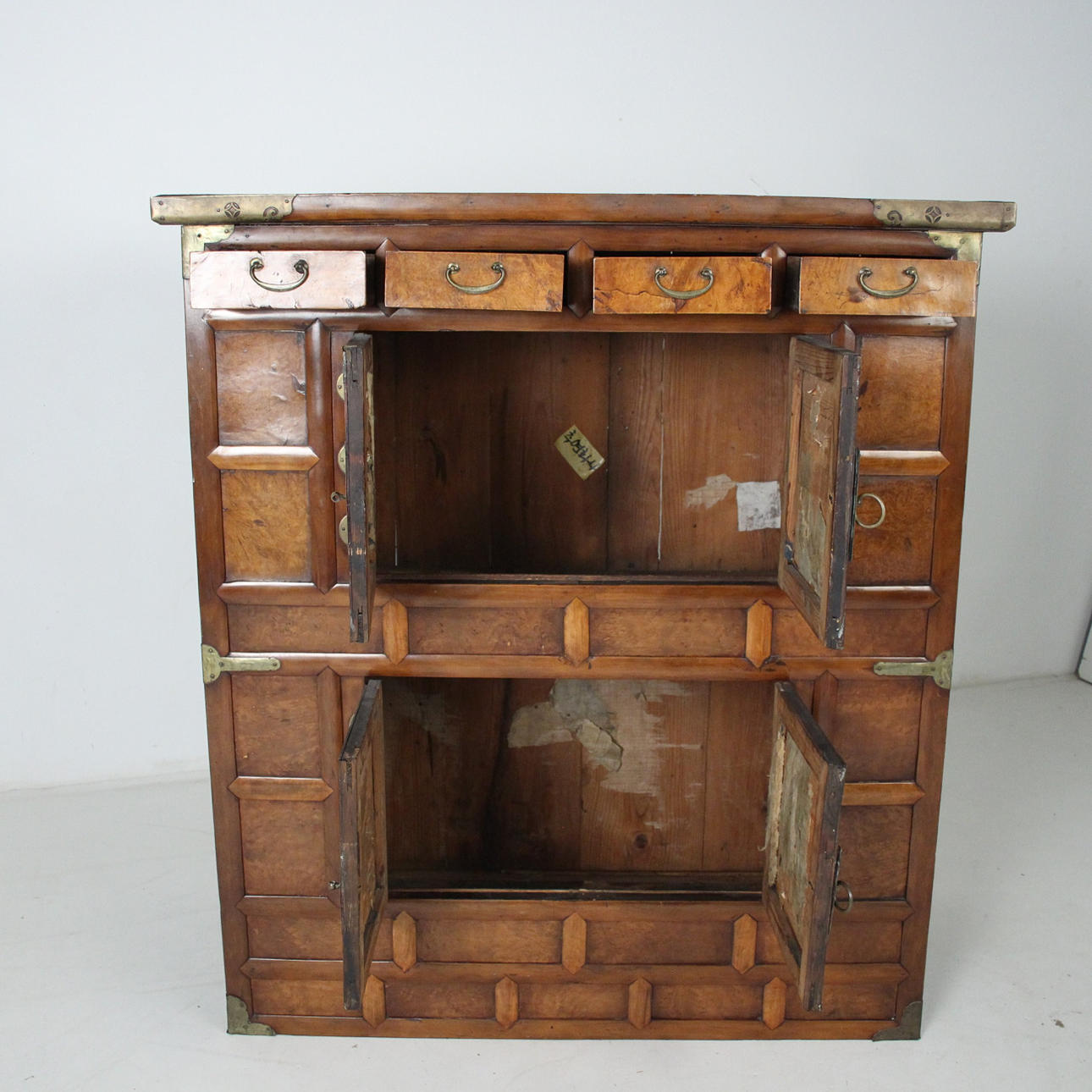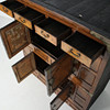 Mueble chino con herrajes de latón, dos puertas y cuatro cajones.
