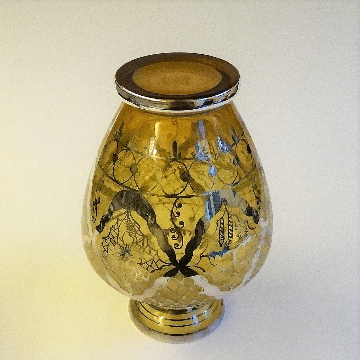 2022949. JARRON DE CRISTAL AMARILLO con decoración plateada.