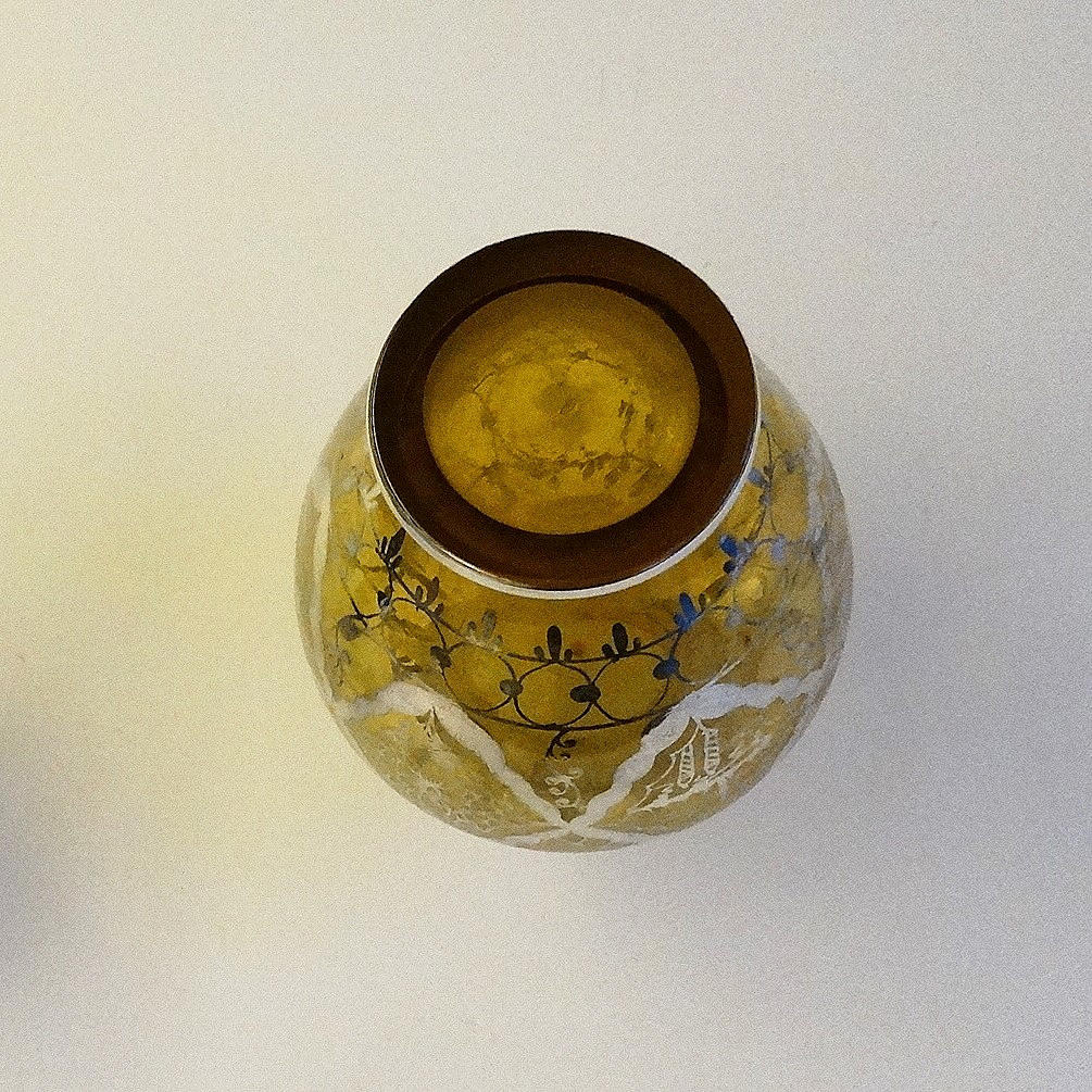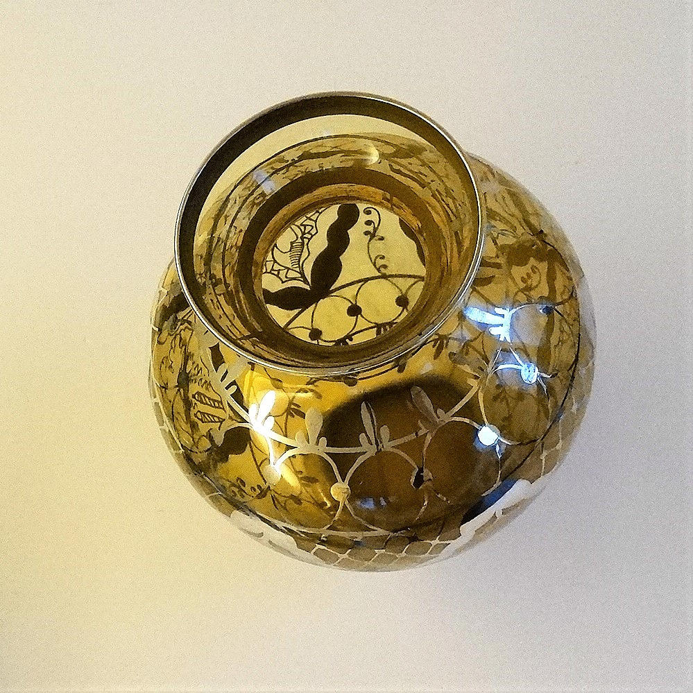 JARRON DE CRISTAL AMARILLO con decoración plateada.