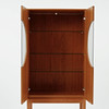 Roble y chapa de roble. Par de puertas parcialmente acristaladas con estante interior de vidrio subyacente. Luz interior. Etiquetado. Ancho 75 cm, profundidad aproximadamente 37 cm, altura aproximadamente 174 cm.