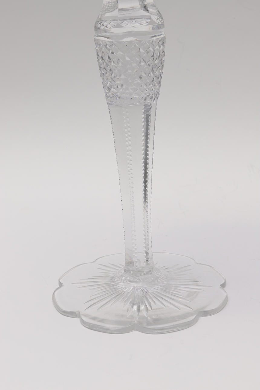 en cristal finamente tallado con parte superior en azul cobalto. Fuste dentado.
