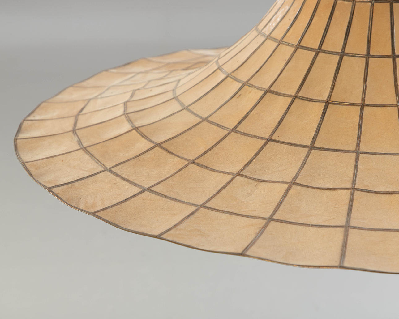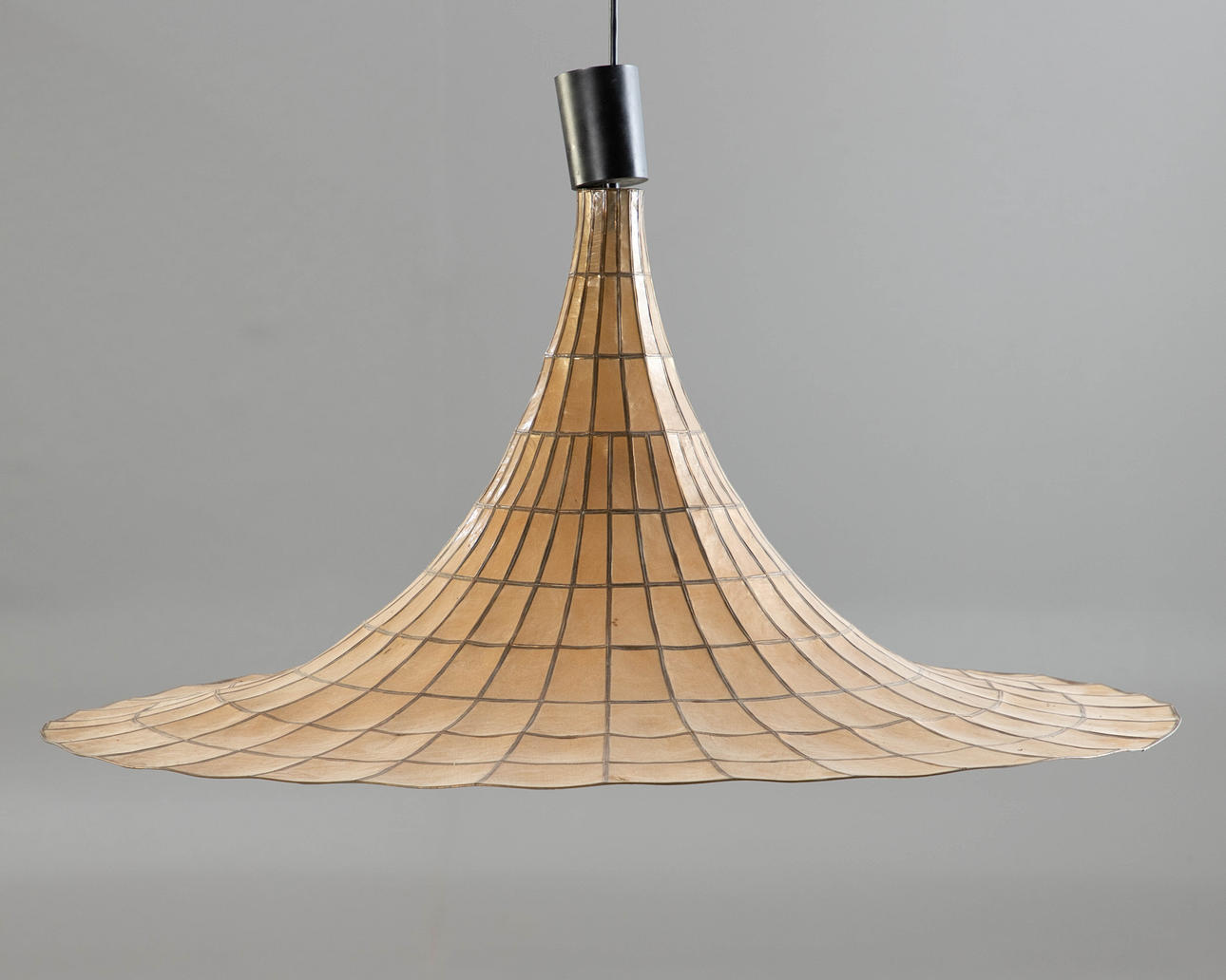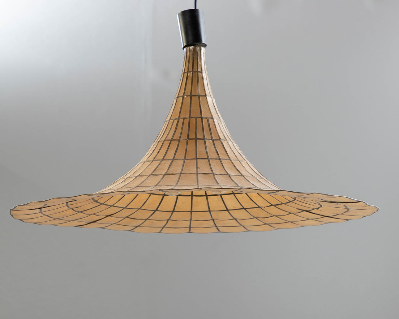 Pantalla de plástico efecto nácar, 2 luces. Inscrito con pegatina, H. 40 cm, dia. aprox. 85cm.