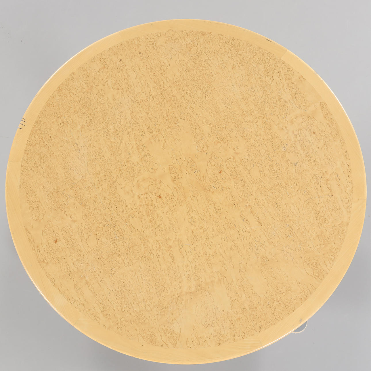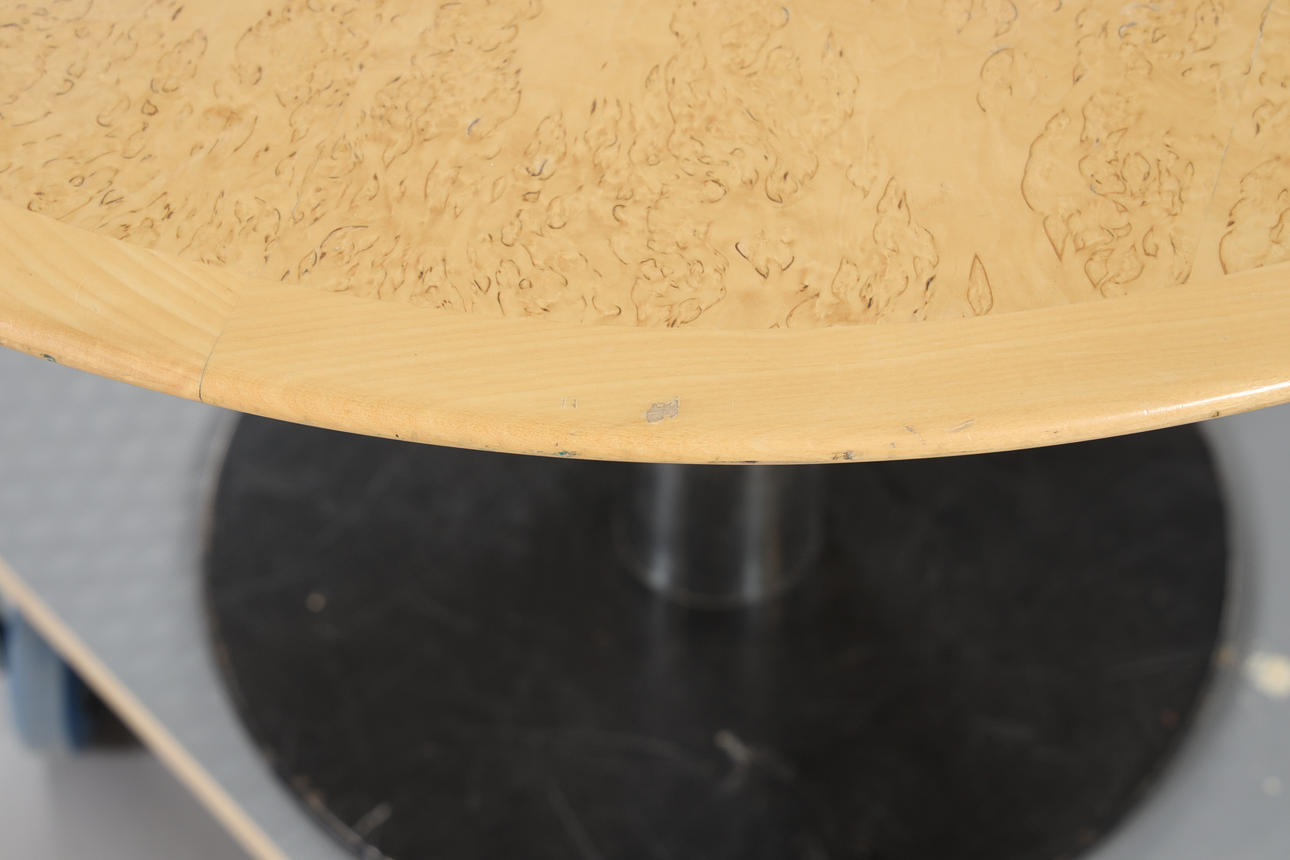 Tapa de abedul Masur, base de metal ennegrecido, altura aproximada 60, diámetro 90 cm.
