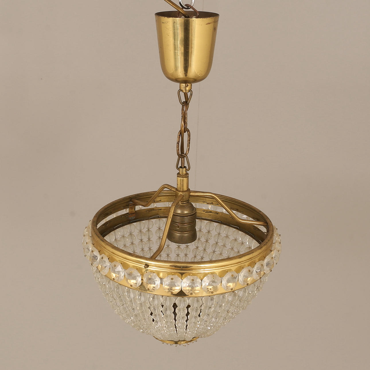 2055546. LÁMPARA DE TECHO, latón con prisma.