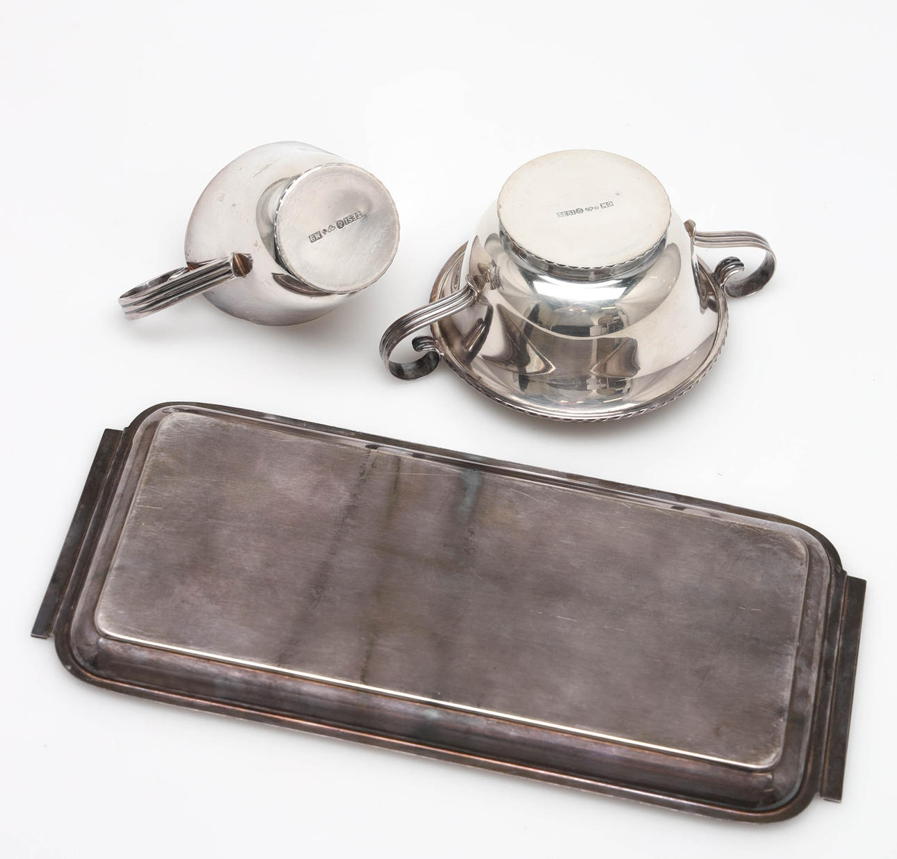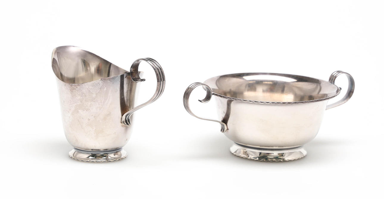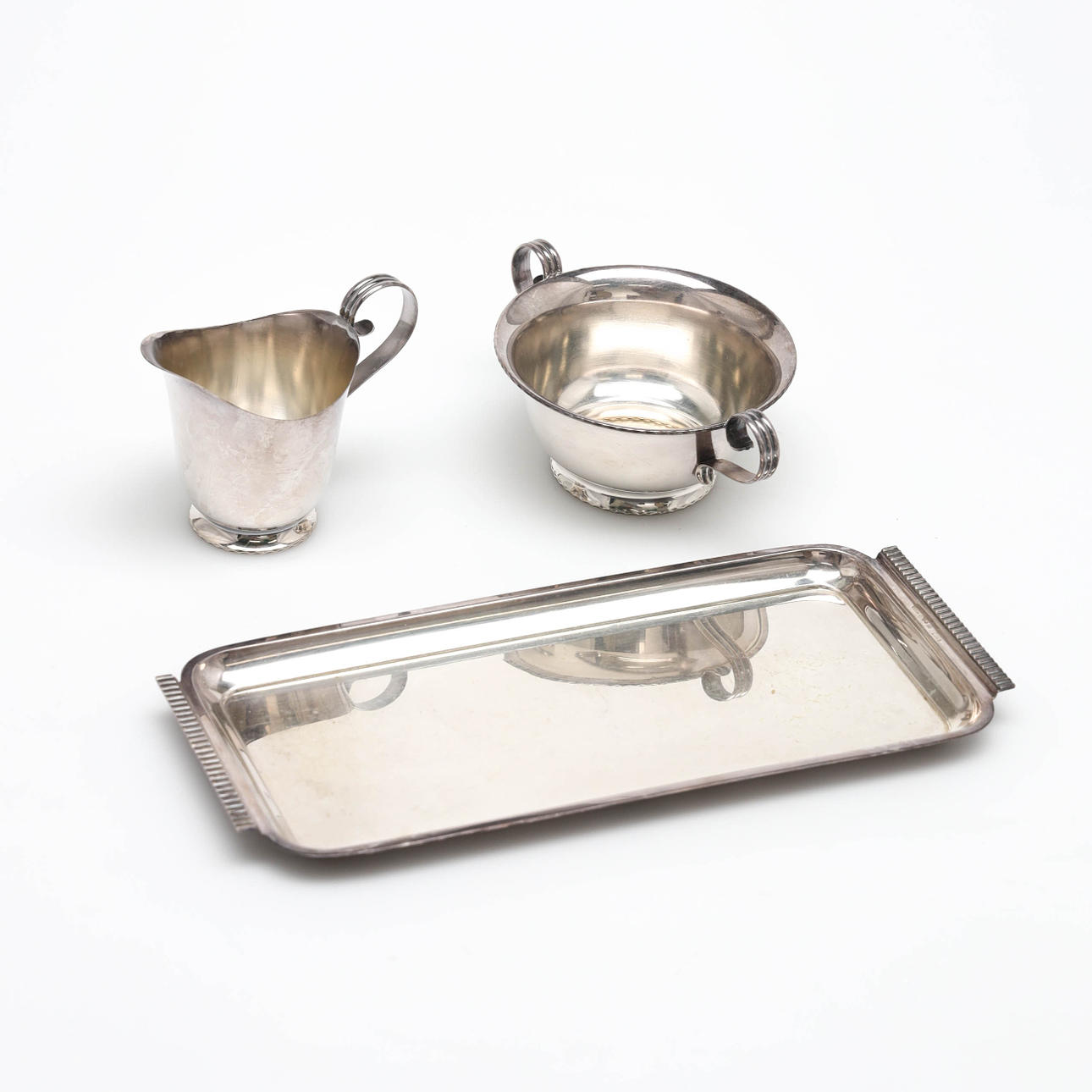 Bandeja estampada Tore Eldh, azucarero y cucharón de crema estampado tesi, peso 230 gramos.