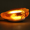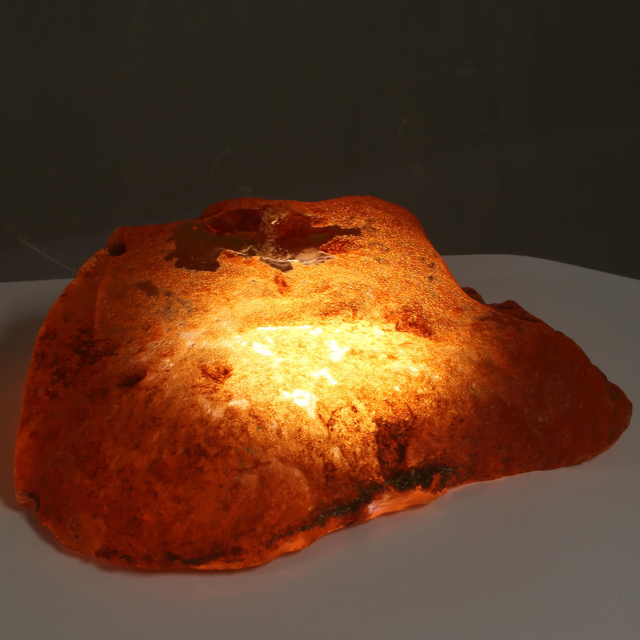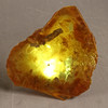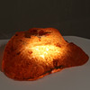 Piedra natural, color amarillo y verde claro, pequeños insectos notados como fusel, cristalino. Ancho máximo 19cm.