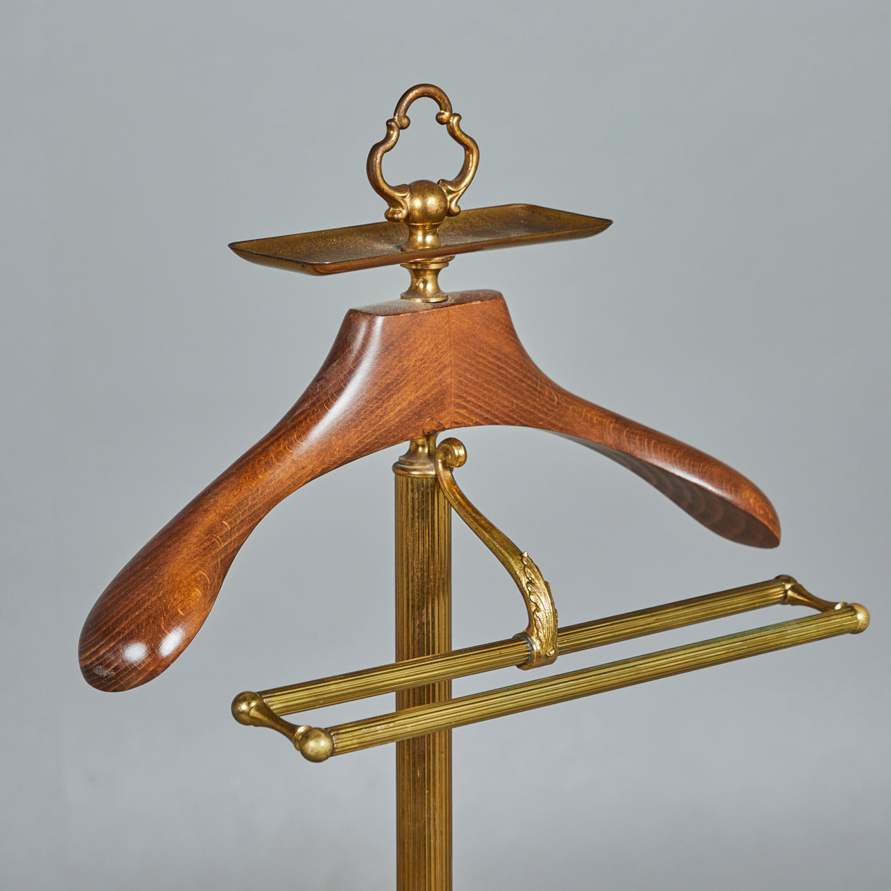 2068911. Perchero, latón, madera, años 60.